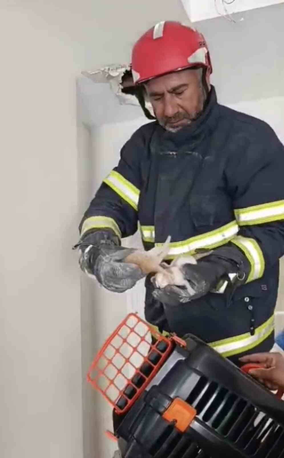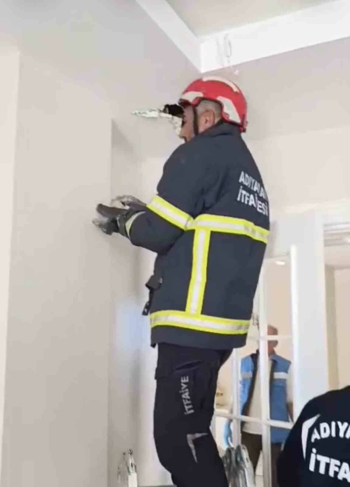 Olay, Adıyaman merkez Altınşehir mahallesinde bir bağ evinde meydana geldi. Ev sahibi bağevine geldiğinde odanın asma tavanından ses duydu. Yavru kedi seslerinin asma tavan içinden geldiği fark eden ev sahibi durumu itfaiye ekiplerine bildirdi. İtfaiye ekipleri, asma tavanın bir kısmını delerek anne kedi ve 4 yavrusunu sıkıştıkları yerden çıkarttı. Anne kedinin havalandırma boşluğundan asma tavana girdiği ve orada yavru kedileri dünyaya getirdiği ifade edildi. Kurtarılan yavru kediler Adıyaman Belediyesi Veteriner Müdürlüğüne götürüldü.