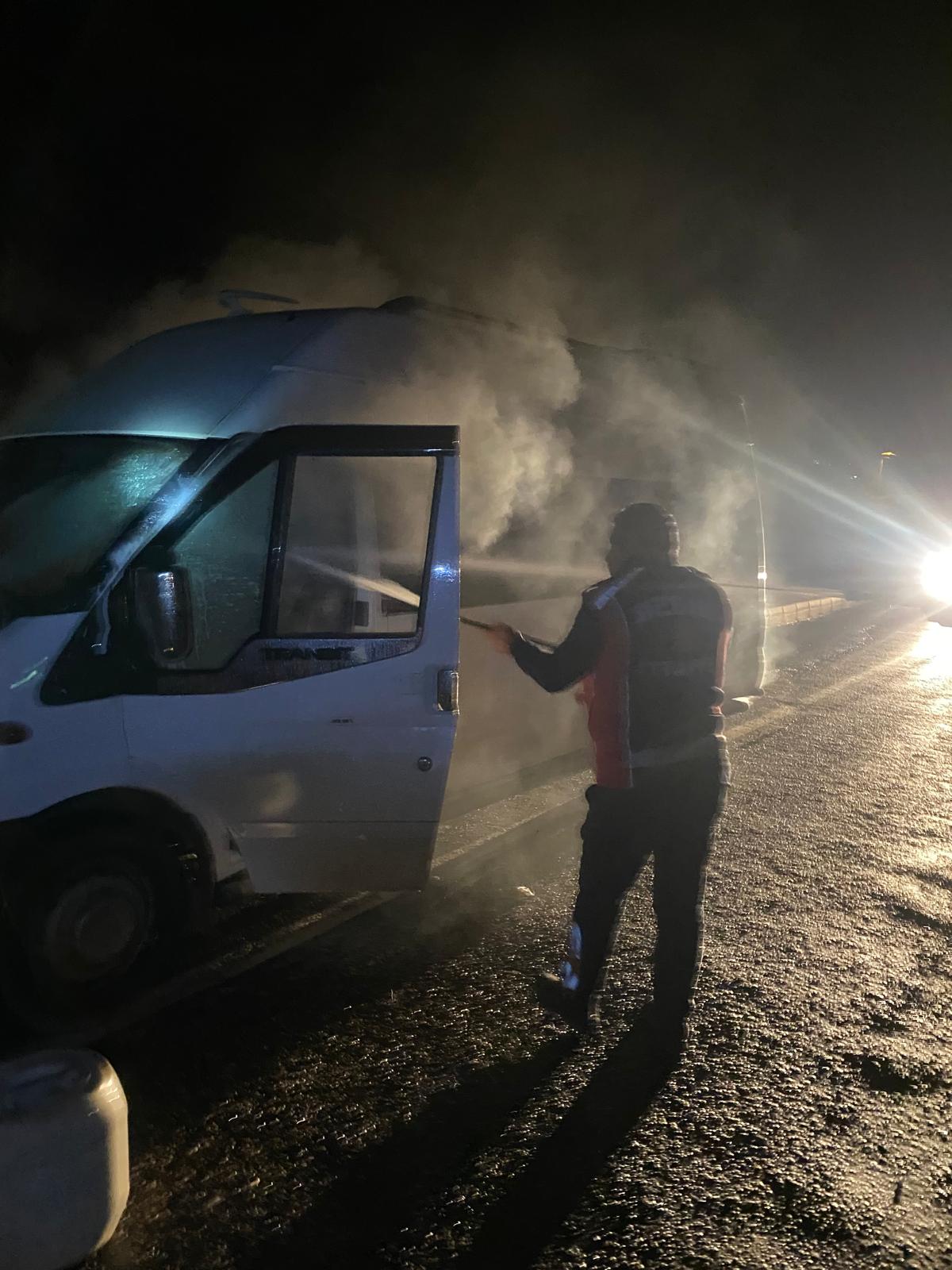 Durumun bildirilmesi üzerine olay yerine gelen itfaiye ekipleri, yangına hızlı bir şekilde müdahale ederek alevleri kontrol altına aldı. Ancak minibüste yangın maddin hasar meydana geldi.