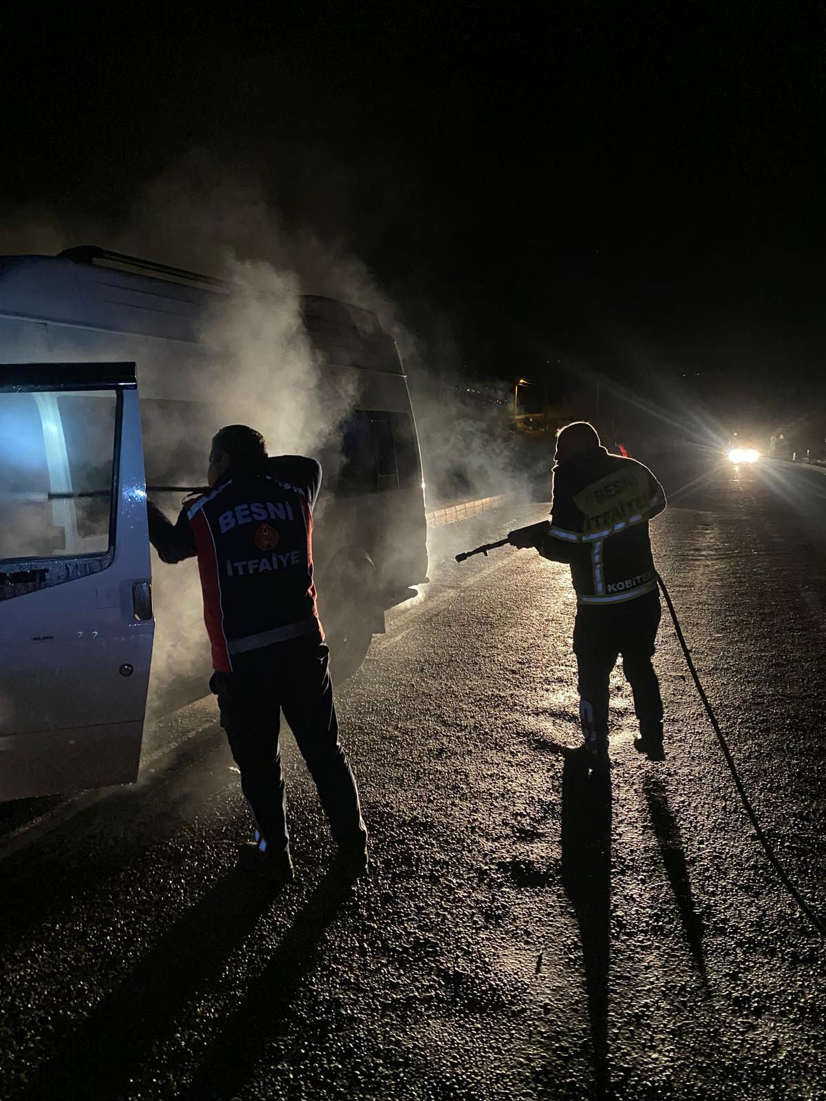 Edinilen bilgilere göre, Tahir Koşar’a ait 02 ADT 206 plakalı minibüs, hareket halindeyken yangın çıktı. Sürücü, aracı güvenli bir noktaya park ederek yangına müdahale etmeye çalıştı.