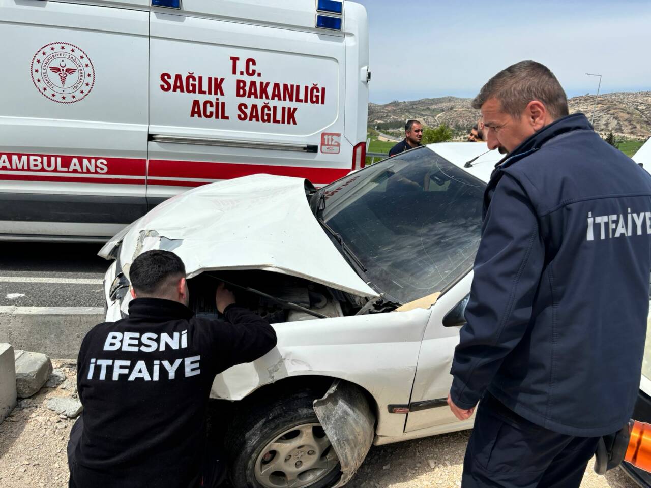 Edinilen bilgilere göre, Besni-Gölbaşı Karayolu Terbizek yol ayrımında 46 LB 909 plakalı, Ali T. idaresindeki otomobil ile Yusuf Y. yönetimindeki 02 AFN 191 plakalı hafif ticari araç çarpıştı. Çarpışmanın etkisiyle araçlarda maddi hasar oluşurken, araçlarda bulunan kişiler yaralandı.