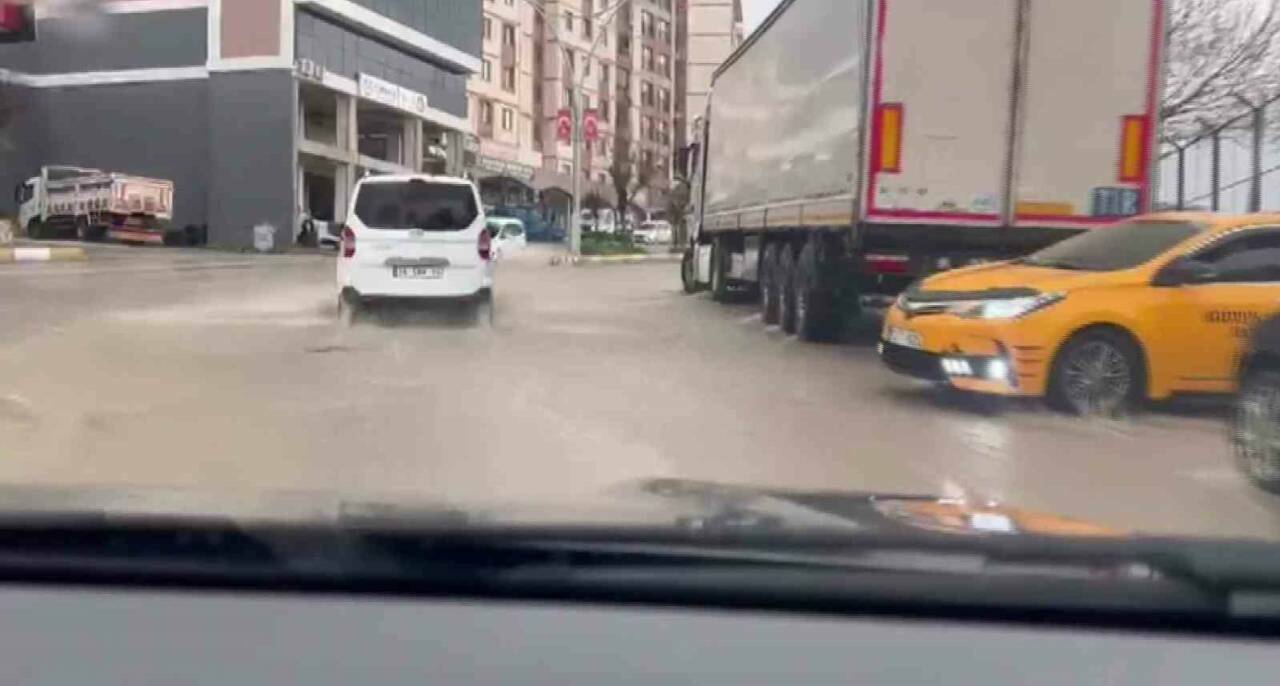Sağanak yağış sonucu meydana gelen sel nedeniyle yollar göle dönerken,