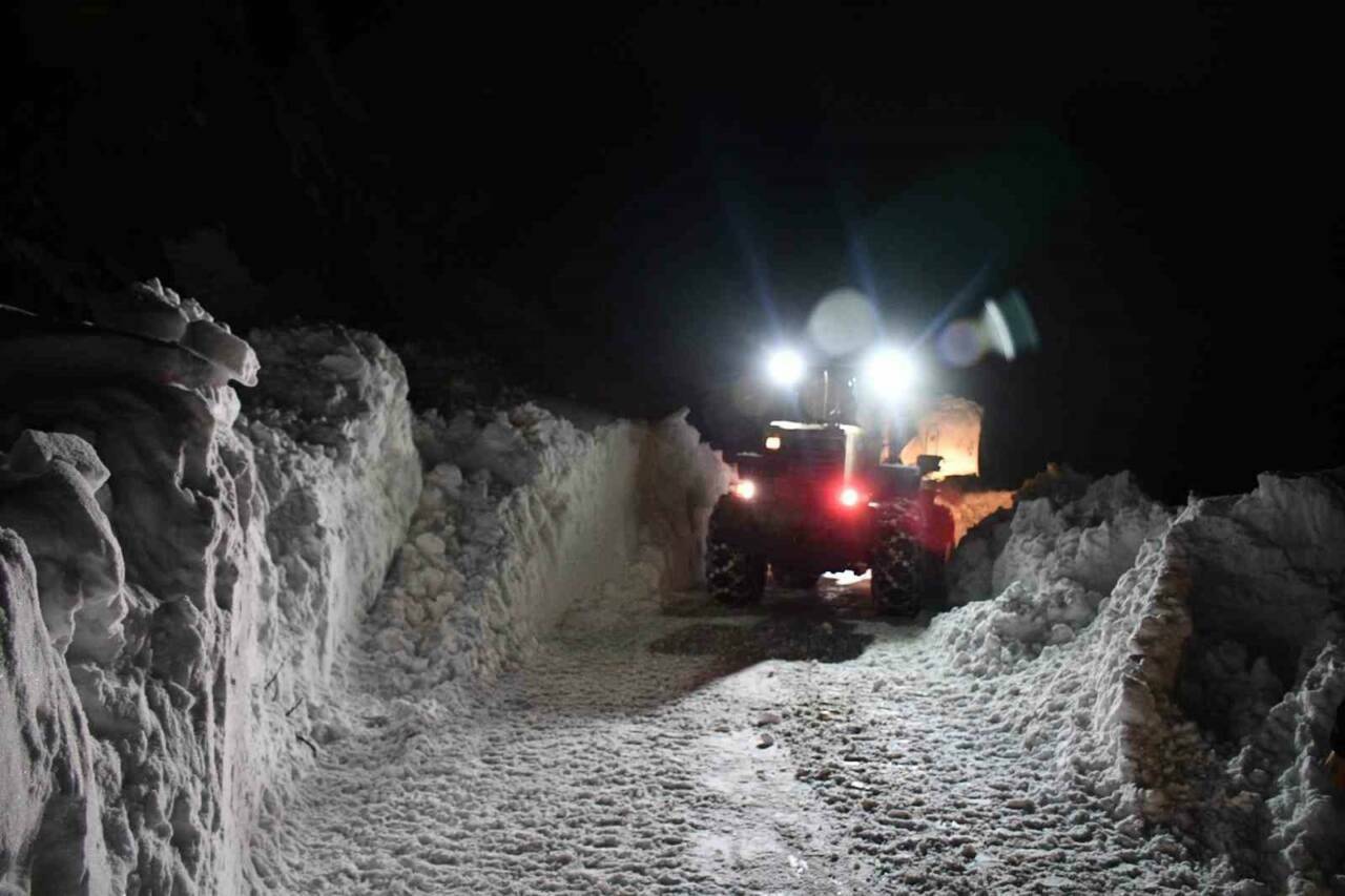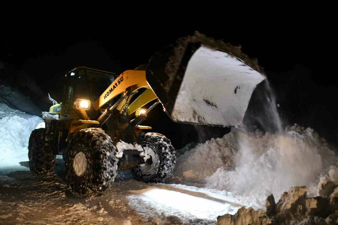 ŞIRNAK’IN BEYTÜŞŞEBAP İLÇESİ BEŞAĞAÇ KÖYÜNDE KAR KALINLIĞI 2 METREYİ BULDU. EKİPLER GECE BOYUNCA YOLLARI AÇMAK İÇİN KAR MESAİSİNİ SÜRDÜRDÜ.