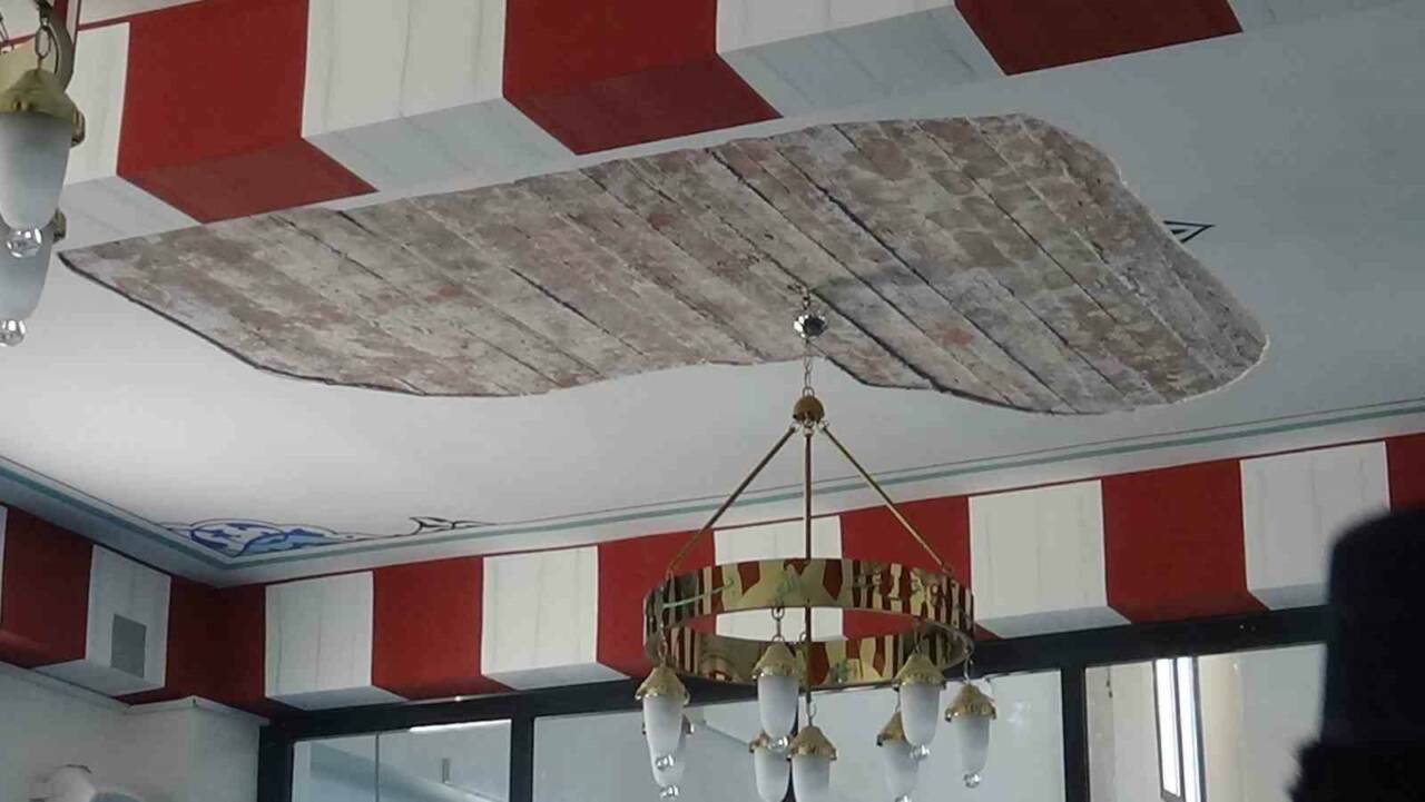Olay anı caminin güvenlik kamerasına yansıdı. Görüntülerde, namaz sırasında tavandan alçı parçalarının düşmesi ve cemaatin yaşadığı panik anları yer aldı.