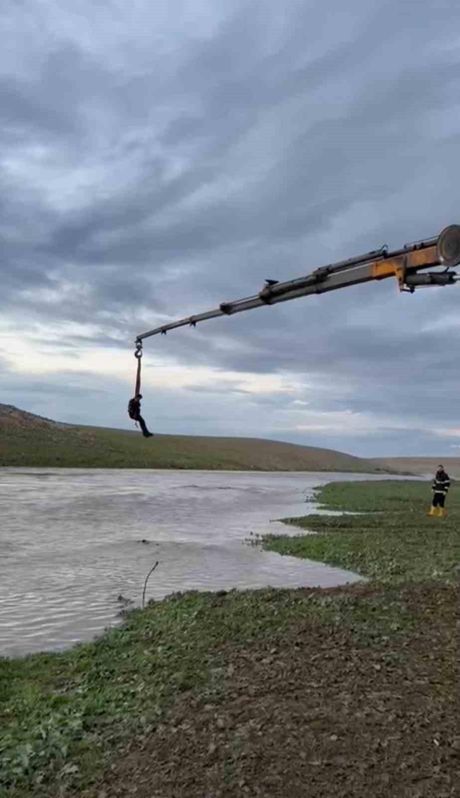 Edinilen bilgiye göre olay, Ceylanpınar-TİGEM arazisi içerisindeki Ofa Göçer yerleşkesinde meydana geldi. Mazlum A. traktörle İbrahimağa Deresi’nden karşıya geçmek istediği sırada suyun yükselmesi sonucu dere yatağında mahsur kaldı. Çevredeki vatandaşların durumu 112 Acil Çağrı Merkezi’ne bildirmesi üzerine bölgeye çok sayıda jandarma, itfaiye ve sağlık ekibi sevk edildi. Akıntının şiddeti nedeniyle bölgeye iş makinesi ve vinç takviyesi yapıldı. Olay yerine ulaşan ekipler, suyun ortasında çaresizce bekleyen sürücüye ulaşmak için vinç yardımıyla kurtarma çalışması başlattı. Titizlikle yürütülen çalışma sonucunda vatandaş, mahsur kaldığı yerden güvenli bölgeye tahliye edildi. Kurtarılan sürücü, olay yerinde yapılan ilk kontrollerinde sağlık durumunun iyi olduğu ve herhangi bir hayati tehlikesinin bulunmadığı öğrenildi. Öte yandan, dere ortasında kalan traktörün ise suyun debisinin azalmasının ardından çekici yardımıyla bulunduğu yerden çıkarılacağı bildirildi.