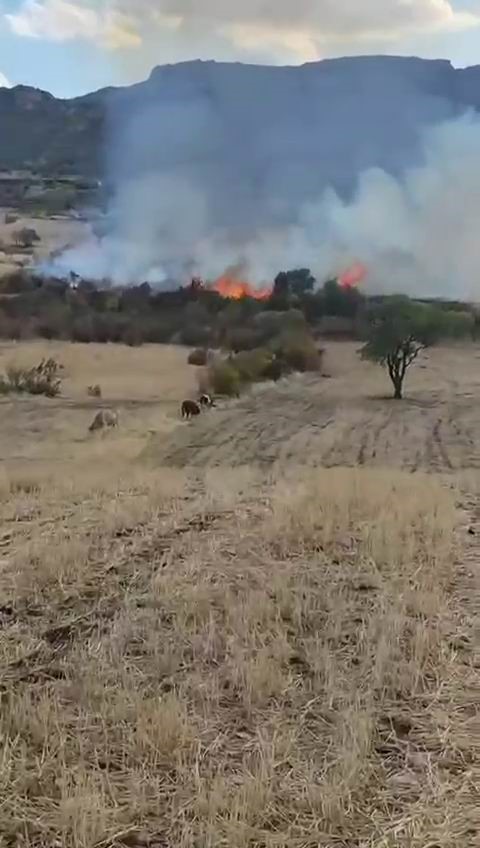 Diyarbakır’ın Hazro ilçesinde otluk alanda çıkan yangında onlarca ağaç kül oldu.