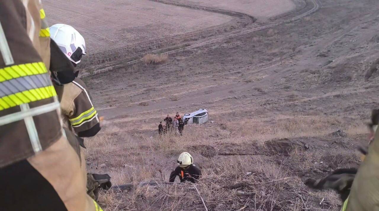 Diyarbakır’da otomobil şarampole yuvarlandı: Yaralı sürücüyü itfaiye kurtardı