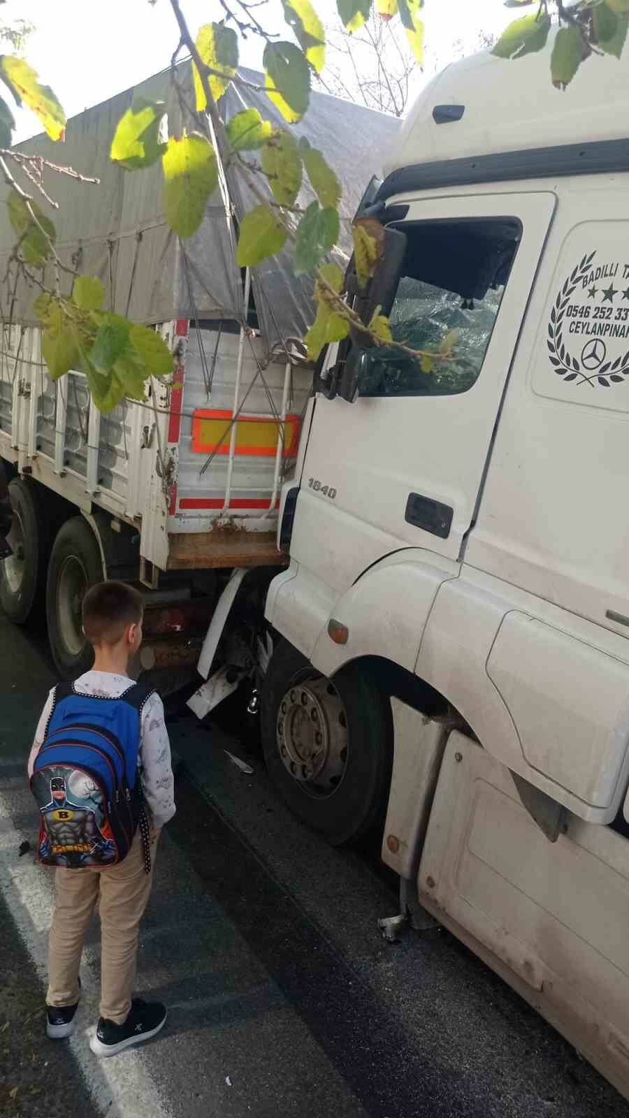 Kaza, Fevzi Çakmak Mahallesi’nde gerçekleşti. yaşanan olayda, İlyas P. yönetimindeki 63 AJY 939 plakalı tırın freni arızalandı. Kornaya basarak ilerleyen tır, Bayram O. idaresindeki 23 ACA 928 plakalı tıra arkadan çarptı. Olay yerine sağlık ve polis ekipleri sevk edildi. Yaralı sürücü İlyas P. ambulansla hastaneye kaldırıldı.