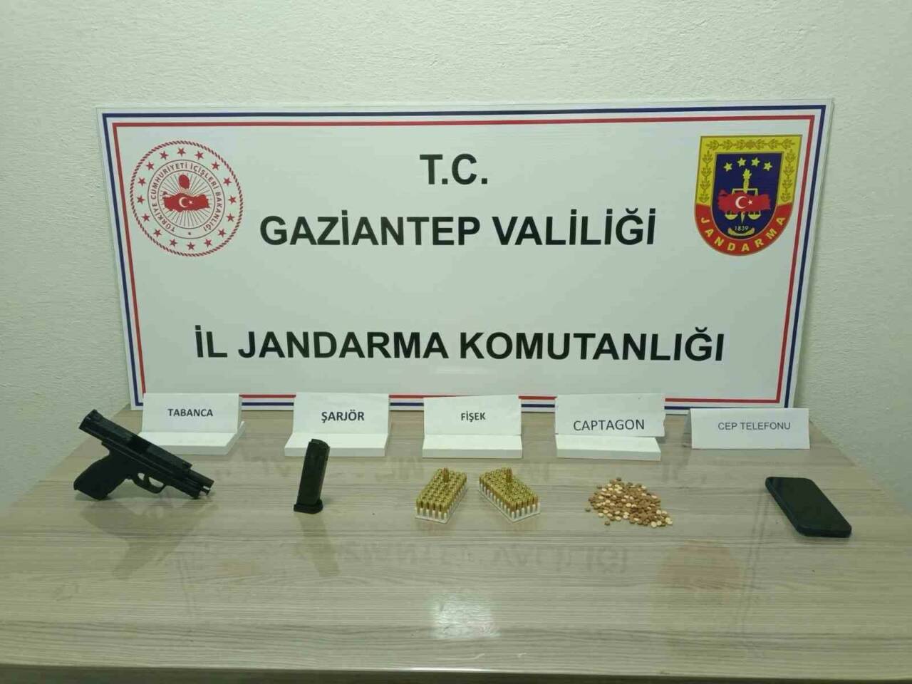 Gaziantep’te jandarma ekipleri tarafından gerçekleştirilen operasyonda 200 captagon hap ele geçirildi. Operasyon sonucunda 1 şüpheli tutuklandı. Gaziantep İl Jandarma Komutanlığı ve Cumhuriyet Başsavcılığı iş birliğiyle kaçakçılık ve uyuşturucuyla mücadele kapsamında yapılan çalışmada, Nurdağı ilçesinde M.A. isimli şahsın uyuşturucu ticareti yaptığı belirlendi. Yapılan yol kontrolü sırasında şahsın aracında ve üstünde yapılan aramada 200 adet captagon hap, 1 ruhsatsız tabanca, tabancaya ait 102 mermi ve 1 cep telefonu bulundu. Şüpheli M.A. adli makamlara sevk edildikten sonra tutuklandı.