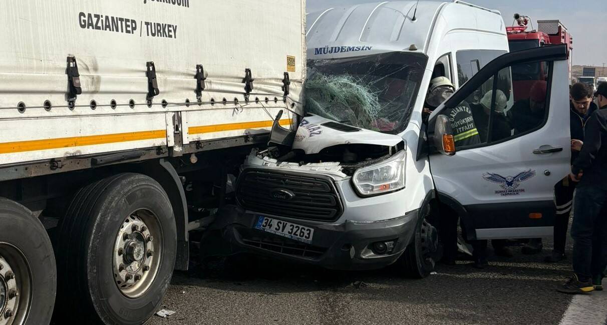 GAZİANTEP’TE MİNİBÜSÜN TIRA ARKADAN ÇARPTIĞI KAZADA 5 KİŞİ HAFİF YARALANDI.