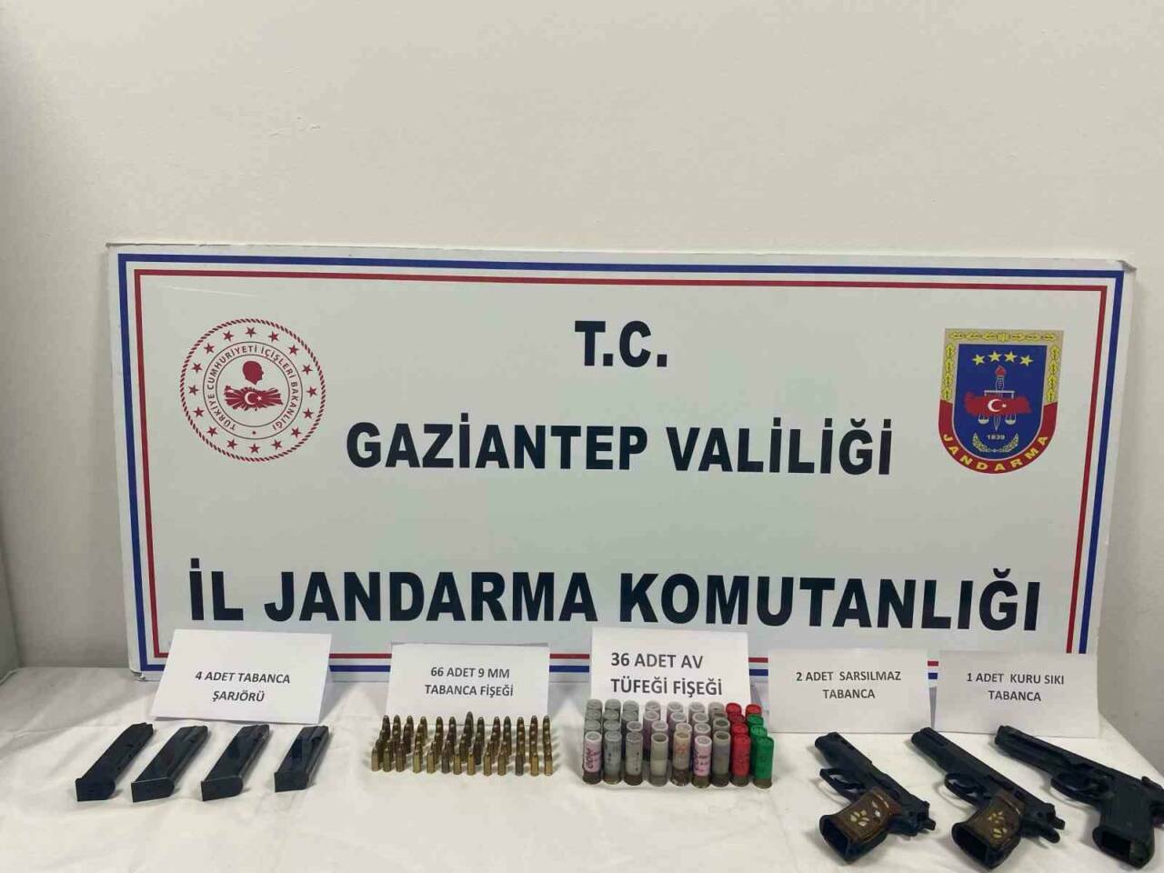 Son bir ay içerisinde Gaziantep’te gerçekleştirilen operasyonlarda jandarma ekipleri tarafından toplam 28 adet tabanca ve tüfek ele geçirildi. Gaziantep İl Jandarma Komutanlığı ve Cumhuriyet Başsavcılığı’nın koordinasyonunda Eylül ayında silah kaçakçılığına karşı yapılan operasyonlar kapsamında şehir genelinde 22 şüpheli üzerinde, ikametlerinde, araçlarında ve işyerlerinde aramalar gerçekleştirildi. Yapılan aramalarda, 13 ruhsatsız tabanca ve şarjörü, 13 ruhsatsız av tüfeği ve şarjörü, 129 tabanca fişeği, 192 av tüfeği fişeği, 2 kalaşnikof tüfek ve şarjörü ile 33 kalaşnikof mermisi ele geçirildi. Hukuki işlem başlatılan şüphelilerden 3’ü tutuklanarak cezaevine gönderildi.