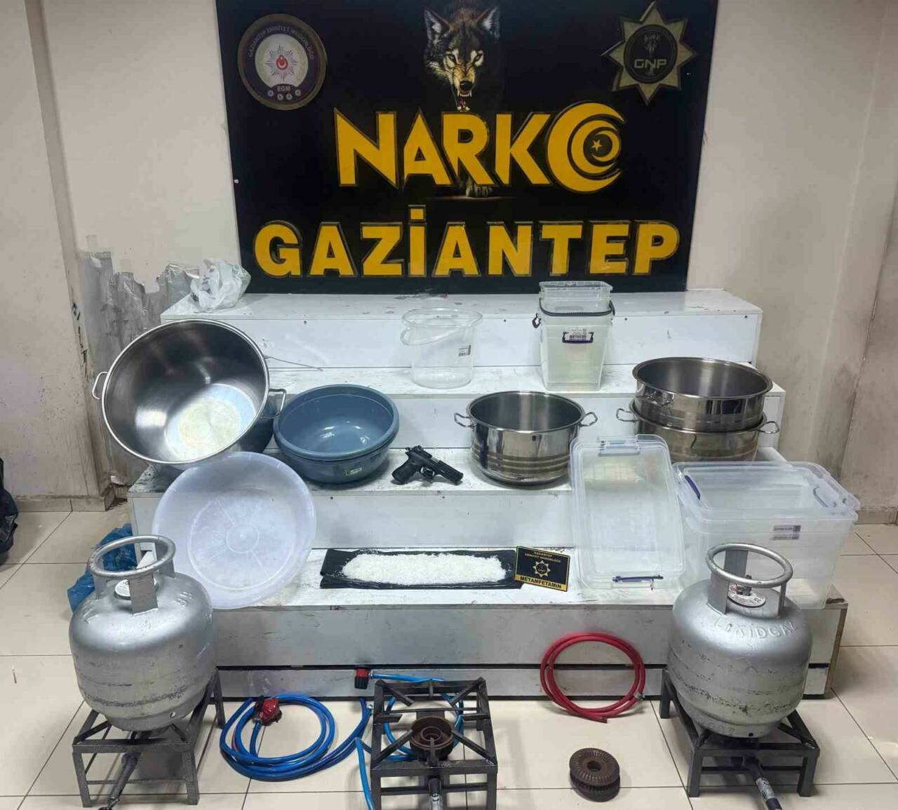 Gaziantep İl Emniyet Müdürlüğüne bağlı Narkotik Suçlarla Mücadele Şube Müdürlüğü ekipleri ve Cumhuriyet Başsavcılığı koordinesinde uyuşturucu ile mücadeleye yönelik operasyon yapıldı. Operasyonda, 570 gram metamfetamin, 470 gram kokain, 3 adet av tüfeği, 3 adet ruhsatsız tabanca, 144 adet fişek ile uyuşturucu imalatında kullanılan çeşitli malzemeler ele geçirildi. Operasyon kapsamında 4 şüpheli gözaltına alındı.
