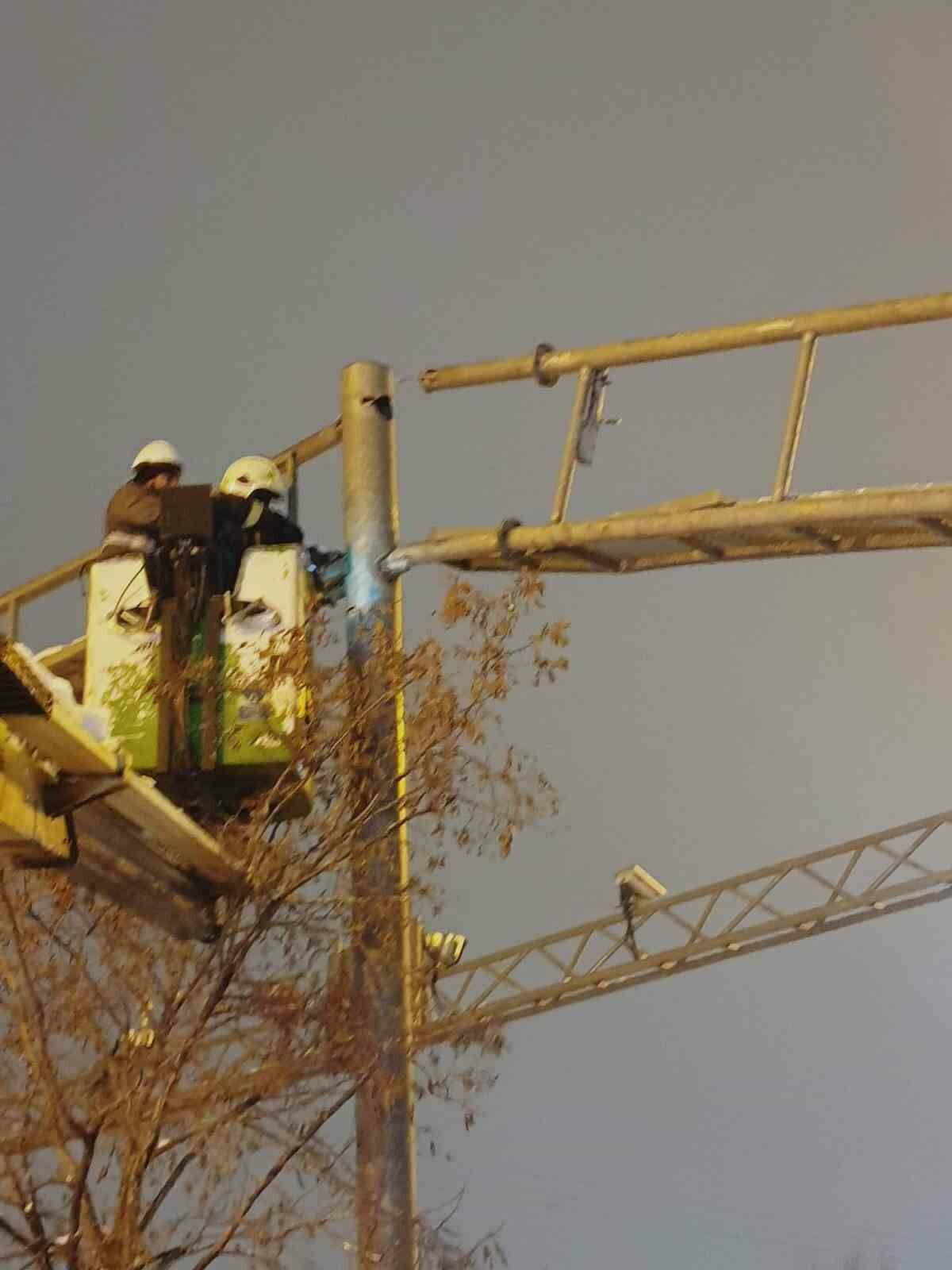 Kamyonun çarptığı trafik levhası itfaiye ekiplerince düzeltildi