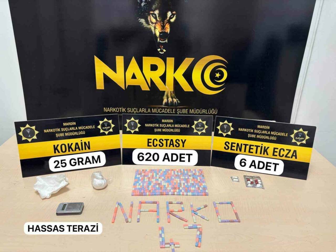 Mardin'de gerçekleştirilen uyuşturucu operasyonunda 620 adet ecstasy hap ile bir miktar kokain ve sentetik ecza ele geçirildi. Operasyon sonucunda 3 şüpheli gözaltına alındı ve adli işlem başlatıldı. Mardin İl Emniyet Müdürlüğü Narkotik Suçlarla Mücadele Şube Müdürlüğü'nün çalışmaları ise uyuşturucu ticaretini ve kullanımını engellemeye yönelik devam etmektedir.