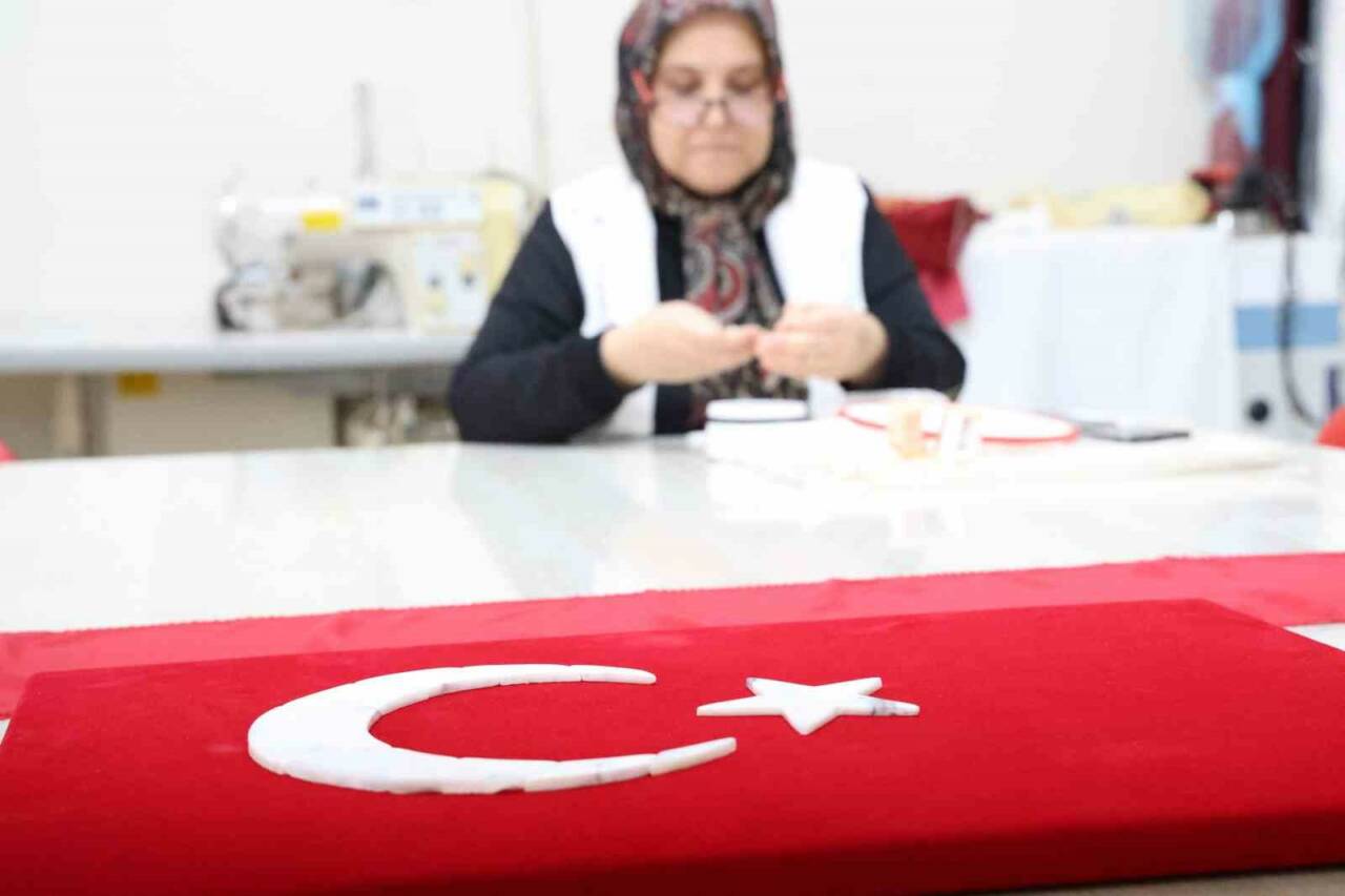 Enstitünün nakış atölyesinde usta öğretici olan Sevim Ayaz, 29 Ekim Cumhuriyet Bayramı nedeniyle çeşitli çalışmaları olduğunu söyledi. Filografi sanatından bayrak çalışmasını yaptıklarını belirten Ayaz, “Bunların hazırlık aşaması desene ve boyuta göre değişiyor. Bir hafta 10 gün süreyle tamamlıyoruz çalışmalarımızı. Teşhir salonumuz var. Gelen misafirlerimize orada sergiliyoruz” dedi.