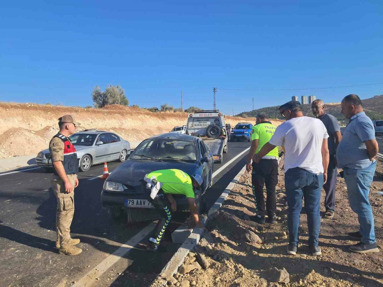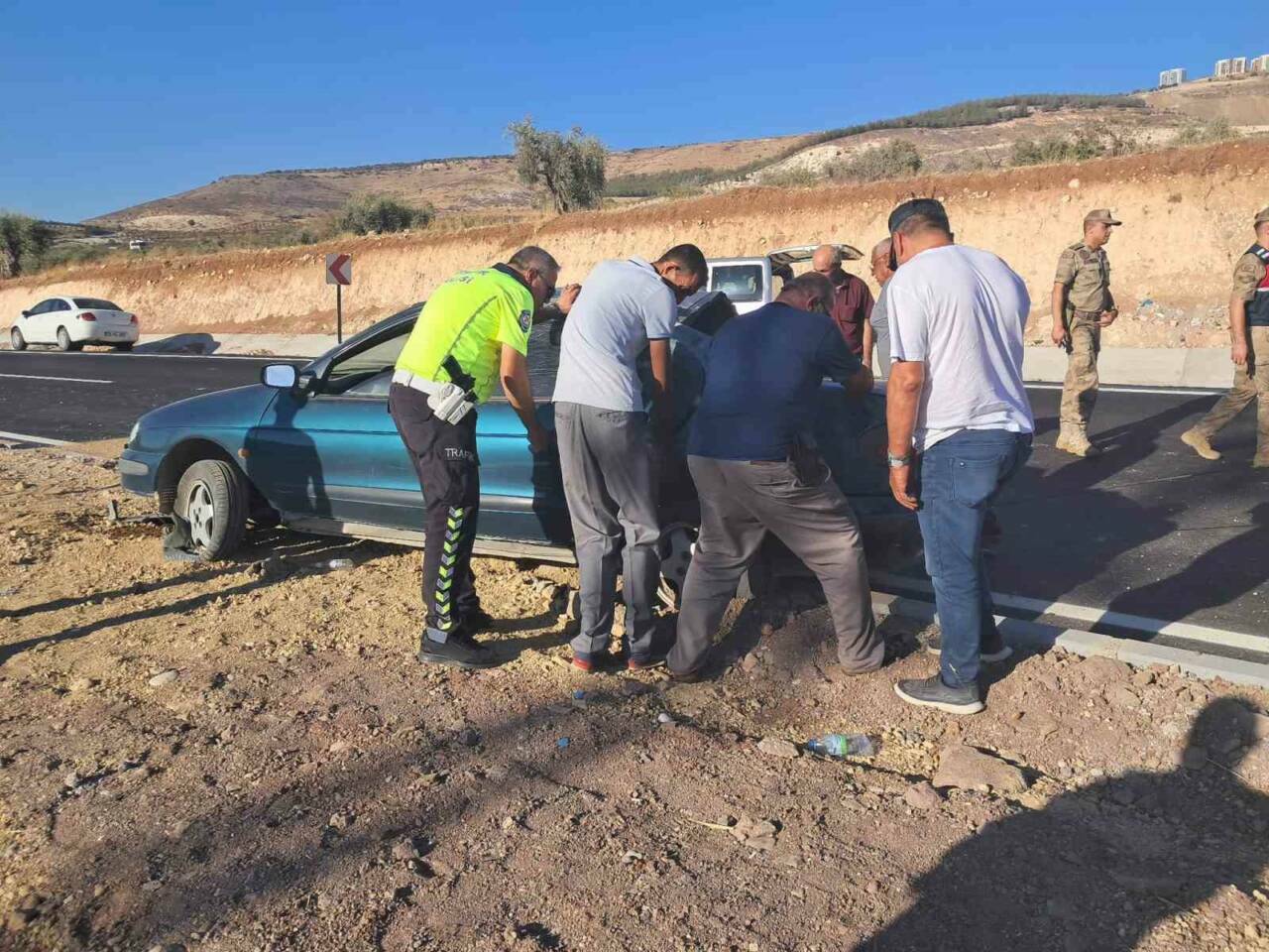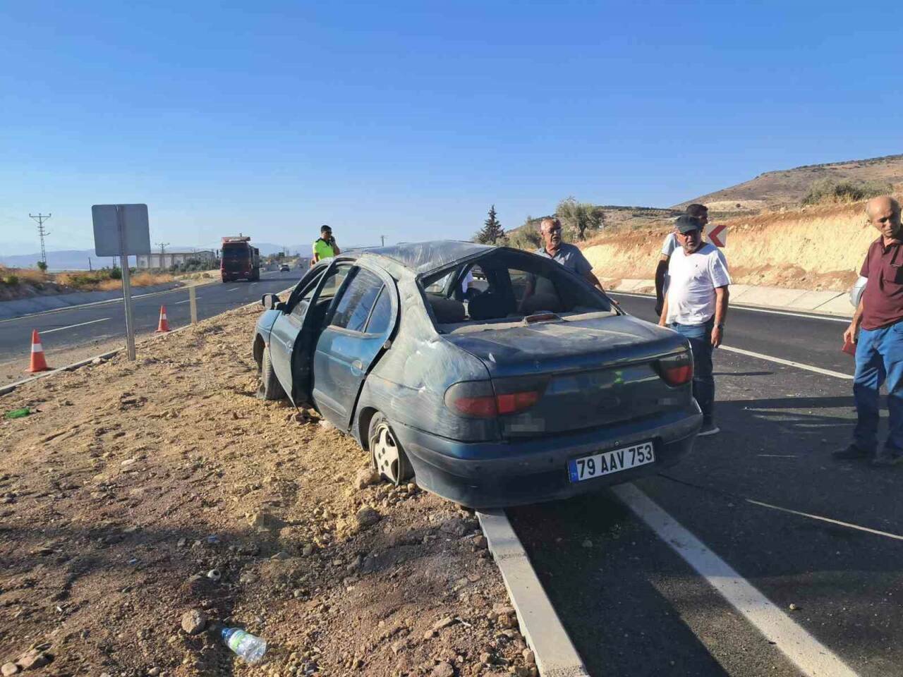 Kilis-Hatay kara yolunda meydana gelen trafik kazasında bir araç takla attı. Kazada bulunan çift, şans eseri yara almadan kurtuldu. 79 AAV 753 plakalı araç, Hatay istikametine seyrederken kontrolden çıkarak refüje girdi ve taklalar attı. Sürücü M.D. ile eşi R.D. araçta sıkıştı. Olay yerine sevk edilen itfaiye, AFAD, jandarma, polis ve sağlık ekipleri, çifti araçtan çıkardı. Araçın çekilmesi ise polis ve jandarma ekipleri tarafından gerçekleştirildi.