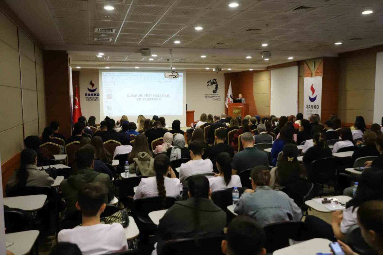 “Cumhuriyeti Yaşamak ve Yaşatmak” konulu sunumunda Türk Milleti’nin, Gazi Mustafa Kemal Atatürk liderliğinde tarih boyunca büyük zaferler kazandığını vurgulayan Dr. Öğr. Üyesi Pekdoğan, Cumhuriyet’in ilanına kadar yaşanan gelişmeleri, imzalanan antlaşmaları tarihler ve belgelerle anlattı.
