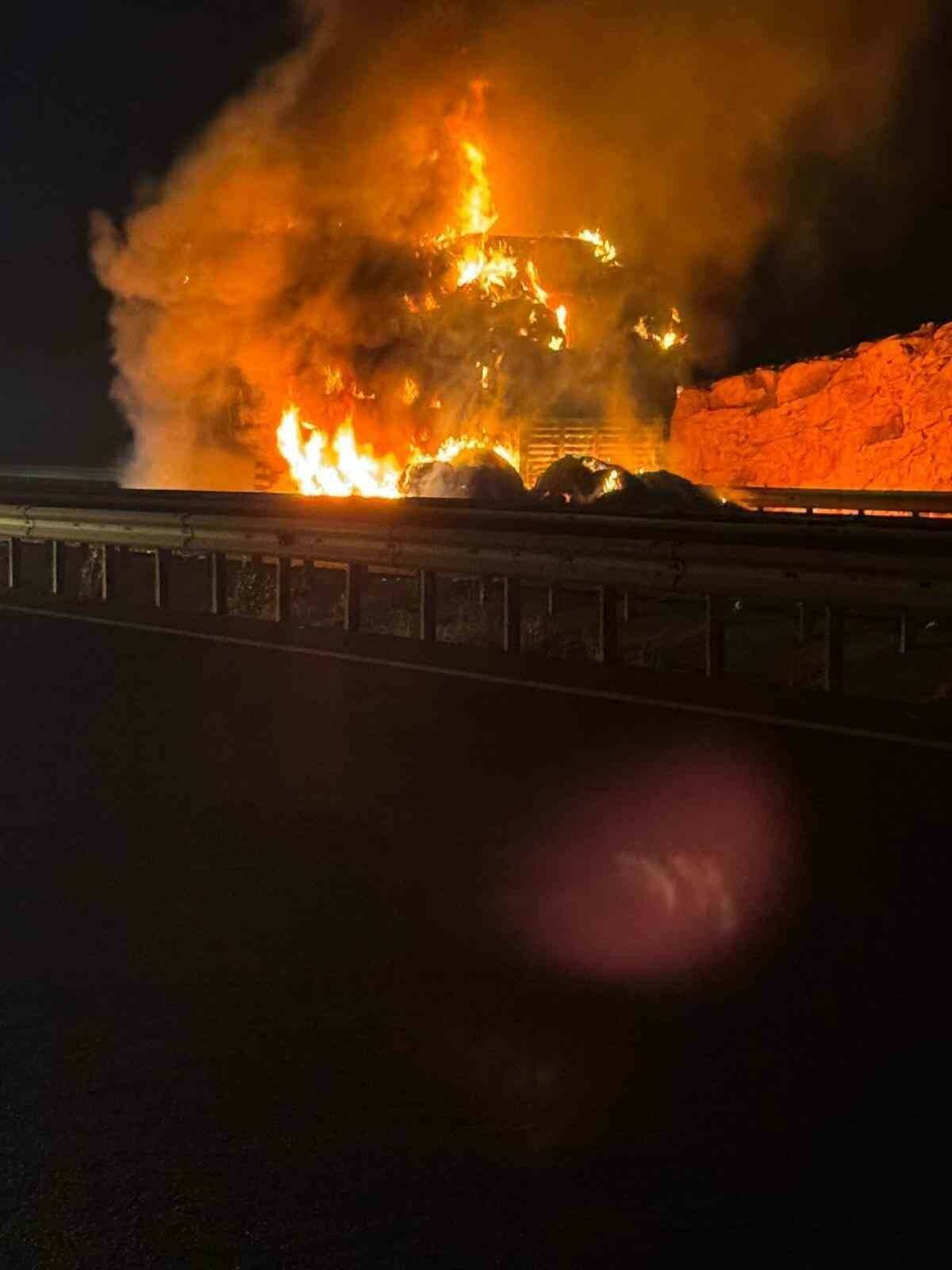 Şanlıurfa’da saman yüklü tır alev alev yandı