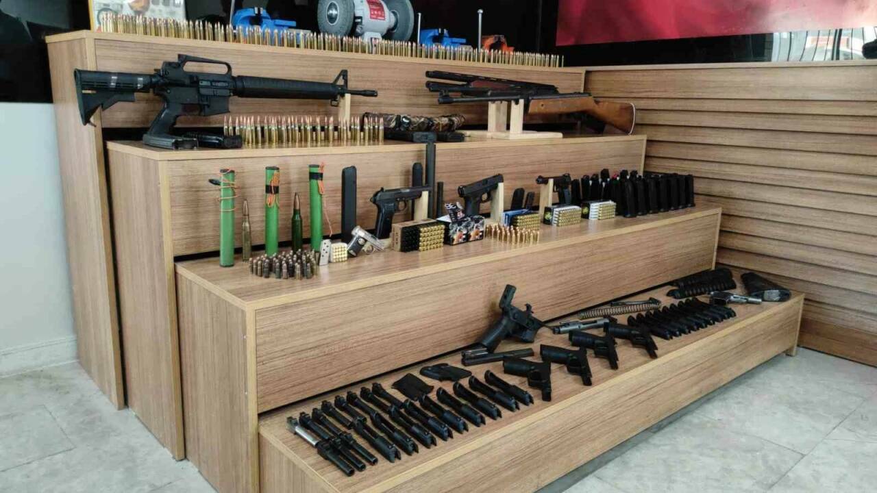 Şanlıurfa’da düzenlenen silah kaçakçılığı operasyonunda 4 kişi gözaltına alındı. İl Emniyet Müdürlüğü ekipleri, silah üretimi yapıldığı değerlendirilen bir iş yerine operasyon düzenledi. Gerçekleştirilen aramalarda 1 piyade tüfeği, 6 tabanca, 3 tüfek, 3 patlayıcı madde, 11 namlu, 709 fişek, 2 uçaksavar mermisi ve 771 silah parçası ele geçirildi. Atölye olduğu belirlenen iş yerindeki malzemelere el konuldu ve 4 şüpheli gözaltına alındı. Şüphelilerin emniyetteki işlemleri devam ediyor.