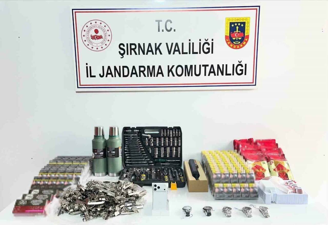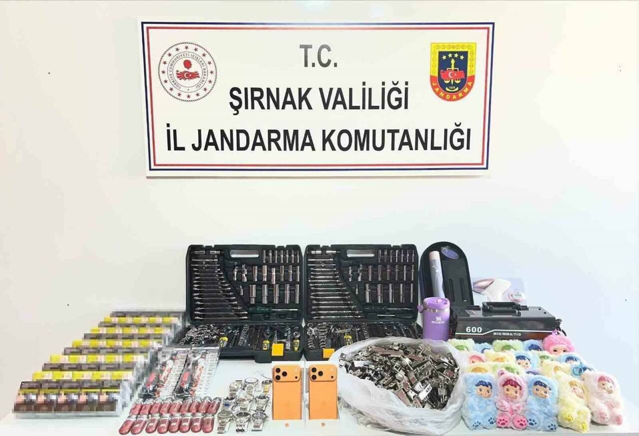 Şırnak İl Jandarma Komutanlığı Kaçakçılık ve Organize Suçlarla Mücadele (KOM) Şube Müdürlüğü ekipleri, kent merkezi ve 6 ilçede gerçekleştirdikleri operasyonlarda 14 milyon lira değerinde kaçak malzemeyi ele geçirdi. Aramalarda, 1 gram skunk, 2 gram esrar, 500 litre kaçak akaryakıt, 36 litre alkollü içki, 58 cep telefonu, 80 bin 58 adet bandrolsüz sigara, 208 elektronik sigara, 310 puro, 238 elektronik eşya, 2 bin 143 hırdavat malzemesi, bin 103 tekstil malzemesi, 387 kozmetik eşya, 277 süs ve kozmetik eşya bulundu. Operasyonda 2 şüpheli gözaltına alındı ve çıkarıldıkları adli makamlarca tutuklanarak cezaevine gönderildi.