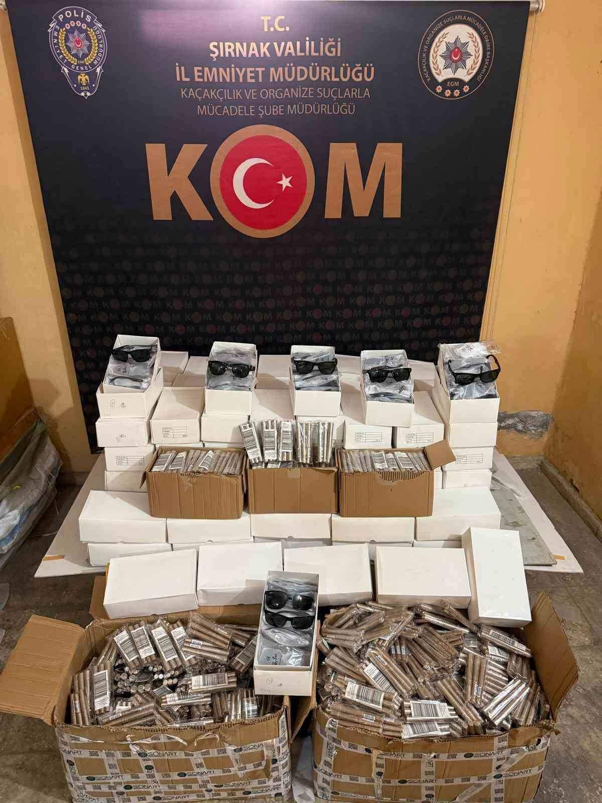 Şırnak’ta polis ekipleri, narkotik, kaçakçılık ve asayiş operasyonları düzenledi. Yapılan operasyonlarda piyasa değeri yaklaşık 5 milyon TL olan kaçak malzeme ele geçirildi. Toplamda 15.08 gram esrar, 2.85 gram metamfetamin, 1.07 gram bonzai ile birlikte çeşitli miktarda bandrolsüz sigara, elektronik sigara tütünü ve pipo tütünü ile birçok eşya ele geçirildi. Operasyonlarda 33 şüpheli gözaltına alındı. 30 şüpheli hakkında yasal işlem yapılırken 3 şüpheli tutuklanarak cezaevine gönderildi.