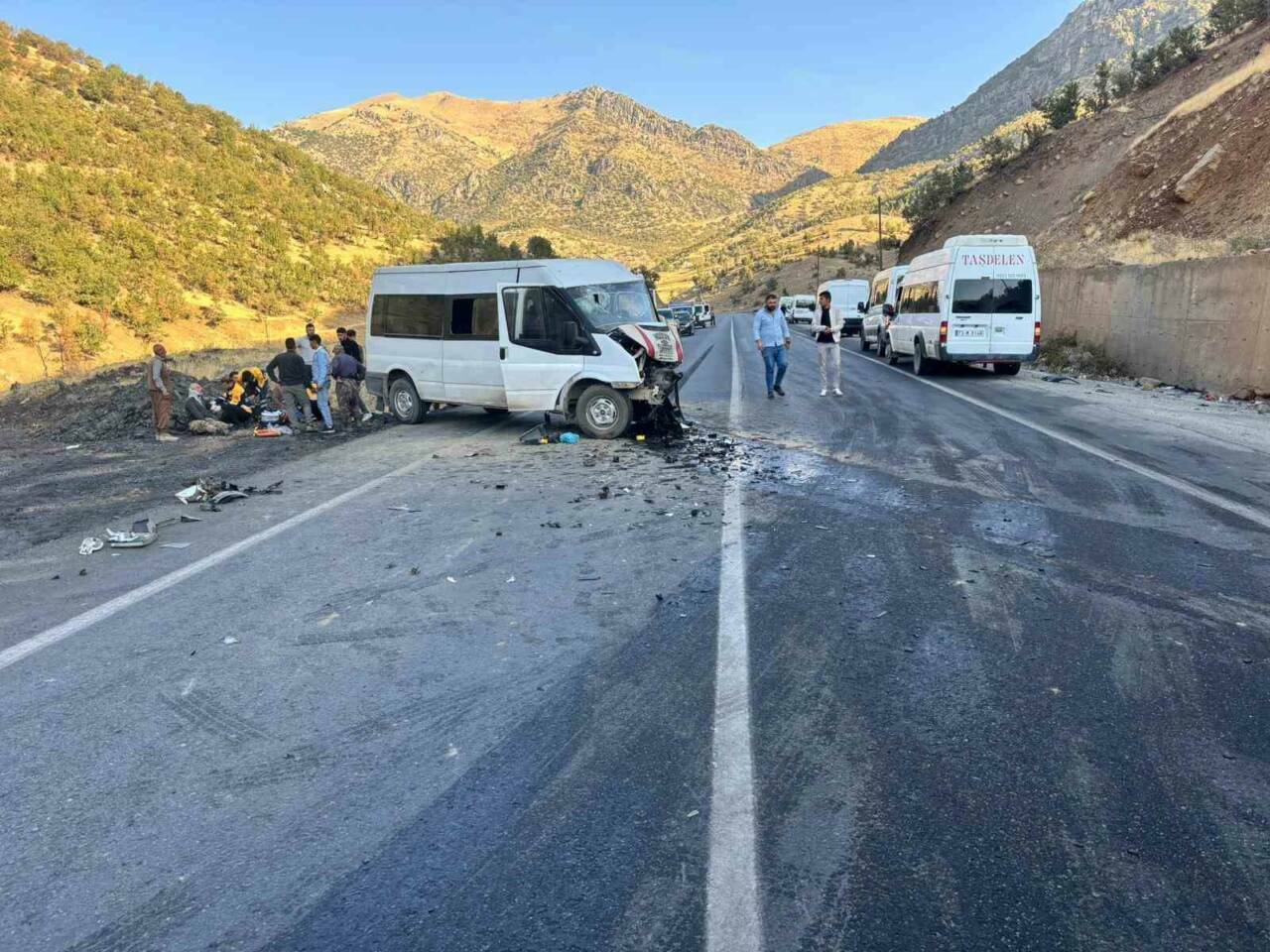 Şırnak’ın Uludere ilçesine bağlı Ortabağ ve Ortasu köyleri arasında yolcu minibüsü ile hafif ticari aracın kafa kafaya çarpışması sonucu meydana gelen trafik kazasında 2’si ağır olmak üzere 14 kişi yaralandı.