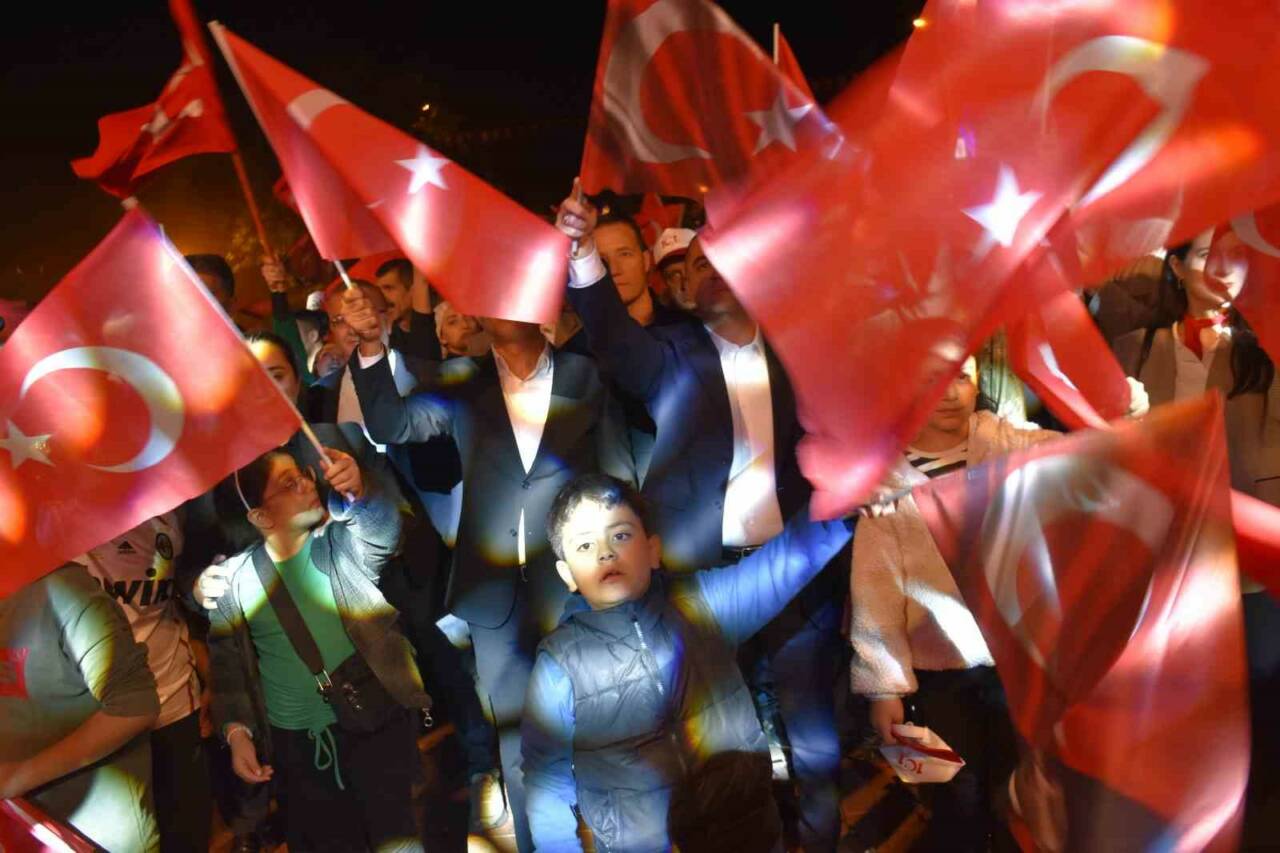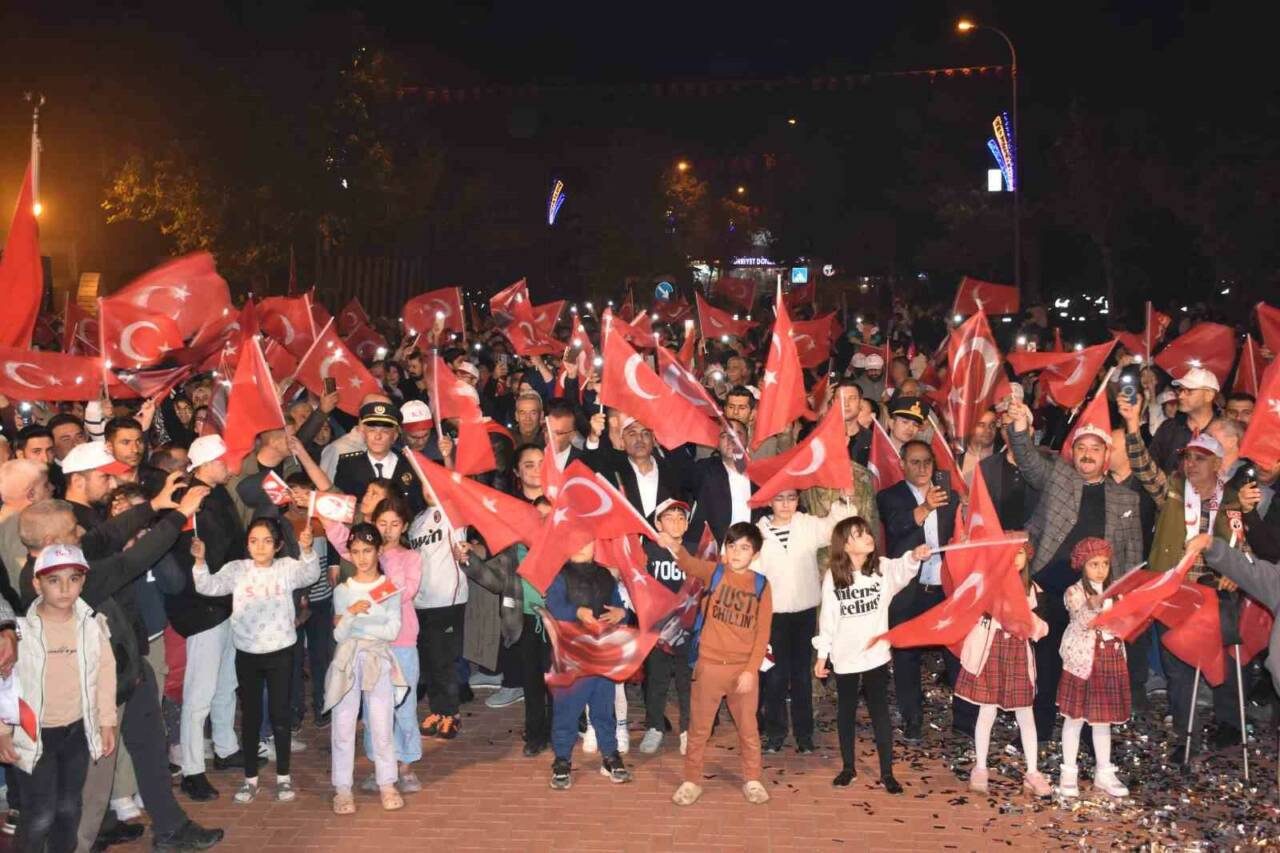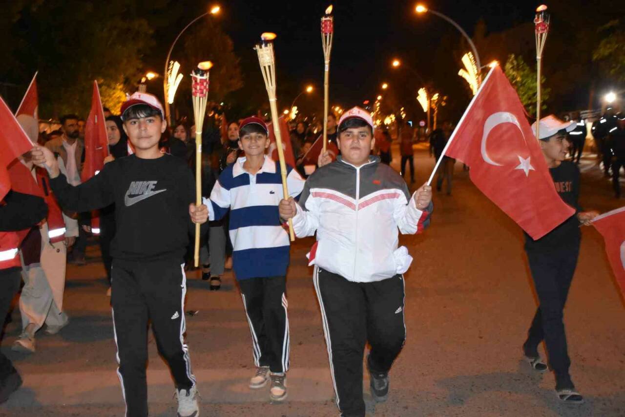 Kutlama programı, Mehmetçik İlkokulu’ndan ve Kanlıkuyu Meydanı’ndan yürüyüşe geçen iki grubun, Cumhuriyet Alanı’ndaki Atatürk Anıtı’nda buluşmasıyla başladı. Meşaleler ve Türk bayraklarıyla ilerleyen kalabalık, “Yaşasın Cumhuriyet!” sloganları atarak kutlama coşkusunu yaşadı.