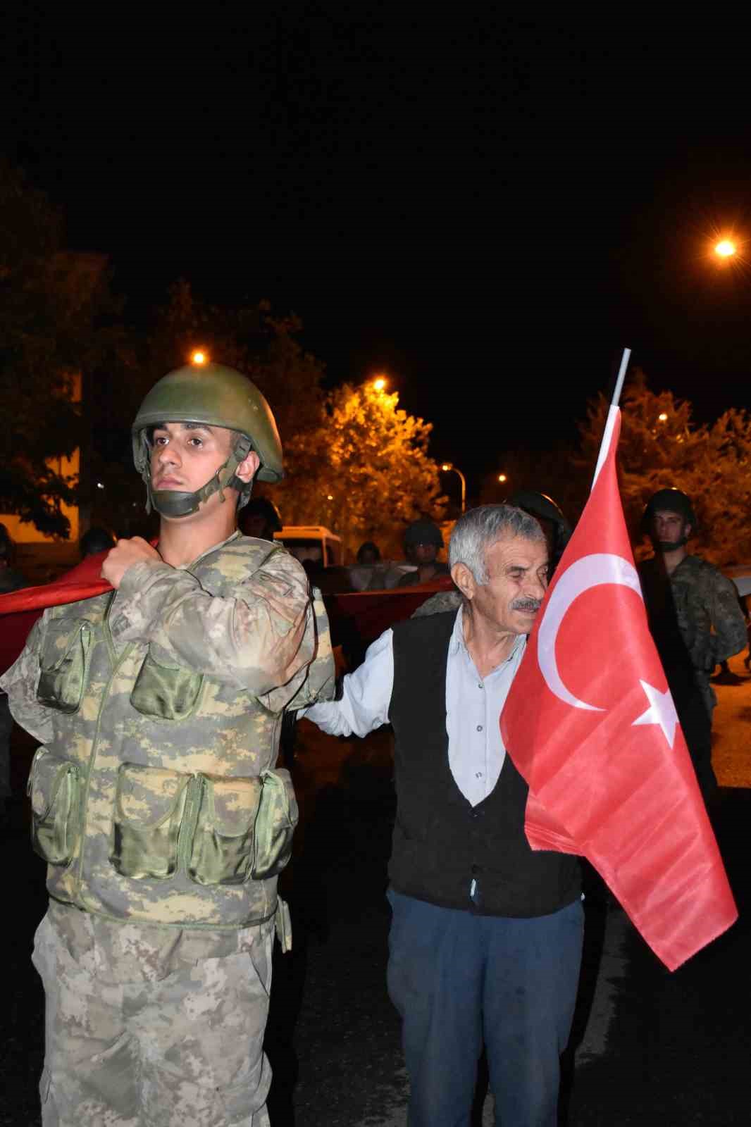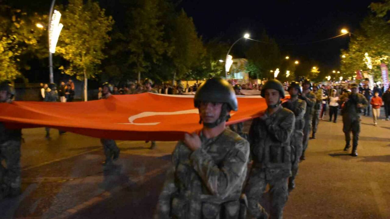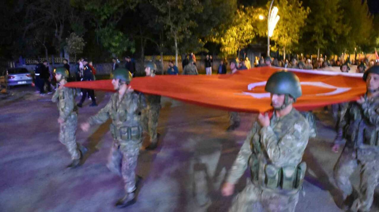 Kutlama programı, Mehmetçik İlkokulu’ndan ve Kanlıkuyu Meydanı’ndan yürüyüşe geçen iki grubun, Cumhuriyet Alanı’ndaki Atatürk Anıtı’nda buluşmasıyla başladı. Meşaleler ve Türk bayraklarıyla ilerleyen kalabalık, “Yaşasın Cumhuriyet!” sloganları atarak kutlama coşkusunu yaşadı.