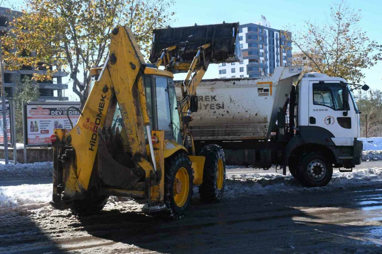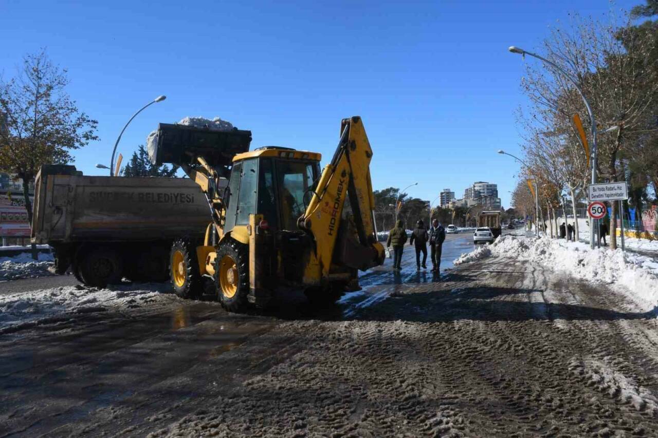 Siverek’te kar kütleleri kamyonlarla şehir dışına taşınıyor