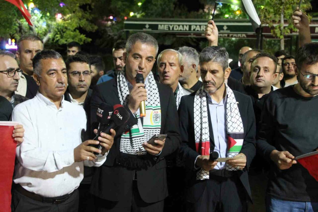 Türkiye’nin çeşitli şehirlerinde vatandaşlar, Sumud filosuna yapılan saldırıları protesto etmek amacıyla sokaklara indi. Şırnaklılar, Cumhuriyet Meydanı’nda bir araya gelerek uluslararası sularda saldırıya uğrayan Sumud filosuna destek vermek amacıyla basın açıklaması yaptı. Şehir Nuh platformu adına konuşan Abdullah Çatı, saldırıyı kınayarak, “Bugün uluslararası sularda, hukuk ve insanlık değerlerini hiçe sayarak gerçekleştirilen korsan bir saldırı yaşandı. Sumud Filosu, Filistin halkına insani yardım götürmek isterken hedef alındı. Bu saldırı, insanlık onuruna, adalete ve vicdana yönelik bir saldırıdır” ifadelerini kullandı. Çatı ayrıca, uluslararası hukukun iflas ettiğini belirterek, “Suskun kalmak zalime destek olmaktır” dedi. Uluslararası kamuoyuna seslenen Çatı, sivil ve insani bir filoya yapılan saldırının savaş suçu olduğunu vurgulayarak, adalet için seslerini yükselttiklerini dile getirdi. “Bu çağrı sadece bir dayanışma değil, aynı zamanda bir izzet çağrısıdır” diyen Çatı, Filistin’e özgürlük ve Kudüs’e bağımsızlık taleplerinin devam edeceğini ifade etti. Sumud filosuna yapılan saldırıları kınayan vatandaşlar, Filistin’in özgürlüğü için mücadele edeceklerini belirtti.