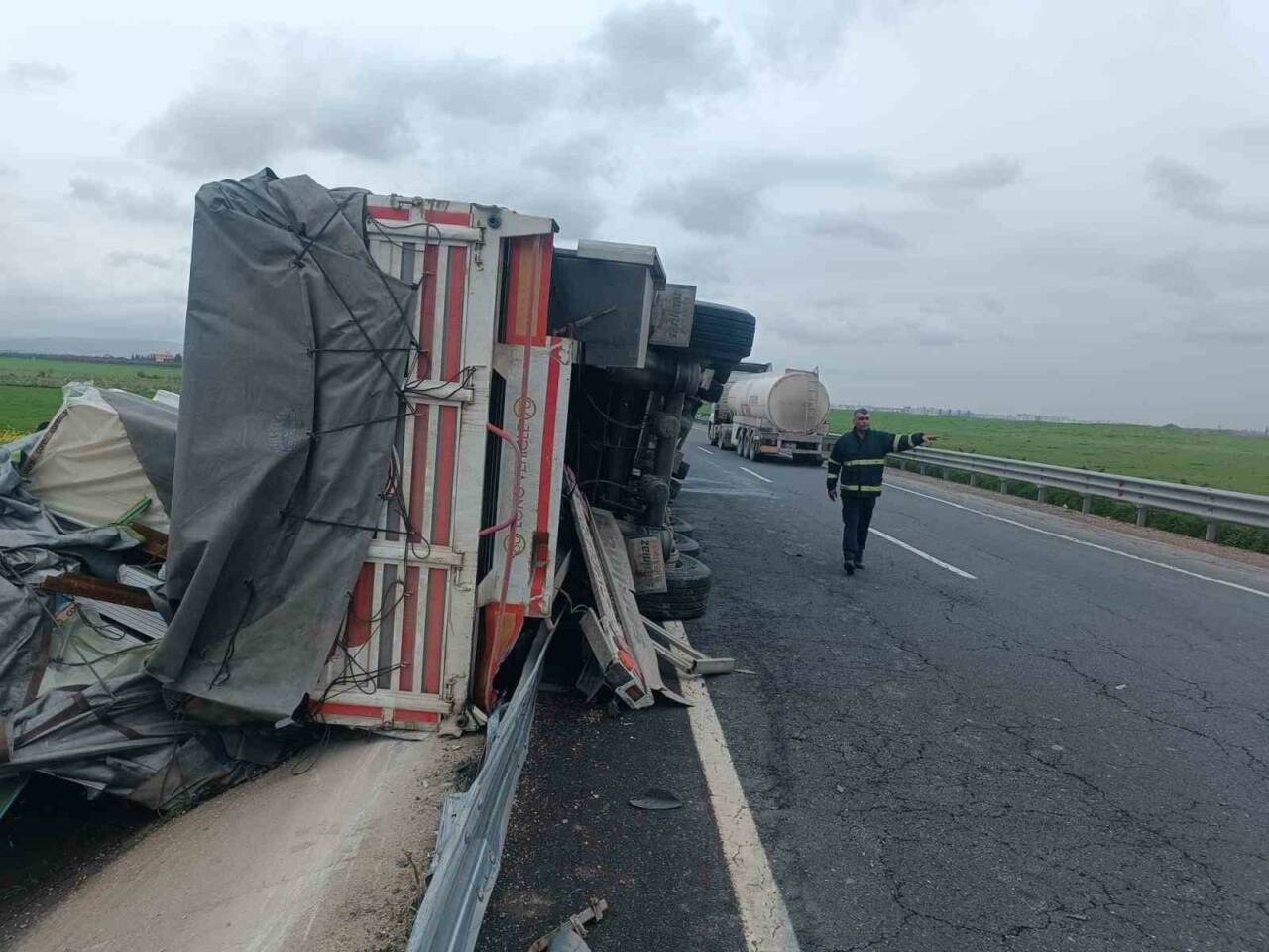 Olay, Nusaybin çıkışı Mardin yolunda meydana geldi. Plakası öğrenilemeyen tır, sürücüsünün direksiyon hakimiyetini kaybetmesi sonucu bariyerlere çarptı. İhbar üzerine olay yerine sağlık, itfaiye ve polis ekipleri sevk edildi. Kazada ölen ya da yaralanan olmazken, tırda hasar oluştu.