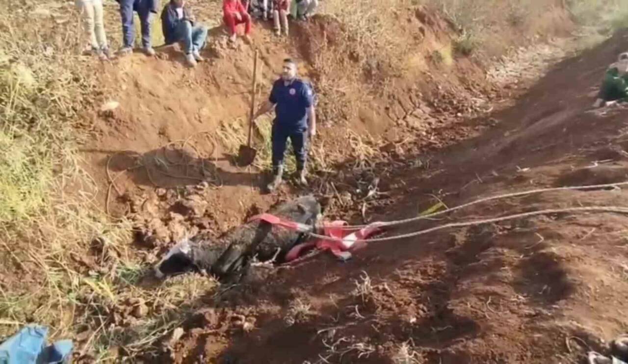 Şanlıurfa’nın Eyyübiye ilçesinde bir inek, tahliye kanalına düştü. İtfaiye ekipleri olaya müdahale etti. Olay, Uğurlu Mahallesi’nde meydana geldi. Bir kişi ineğini otlatmak için mahalleye götürdü. Ancak inek, tahliye kanalına düşerek bataklığa saplandı. İnek sahibi durumu hemen 112 Acil Çağrı Merkezi’ne bildirdi. Şanlıurfa Büyükşehir Belediyesi İtfaiye ekipleri olay yerine sevk edildi. Ekipler, titiz bir çalışma sonucunda ineği kanaldan çıkardı. İnek sahibi, hayvanını kurtaran itfaiye ekiplerine teşekkür etti.