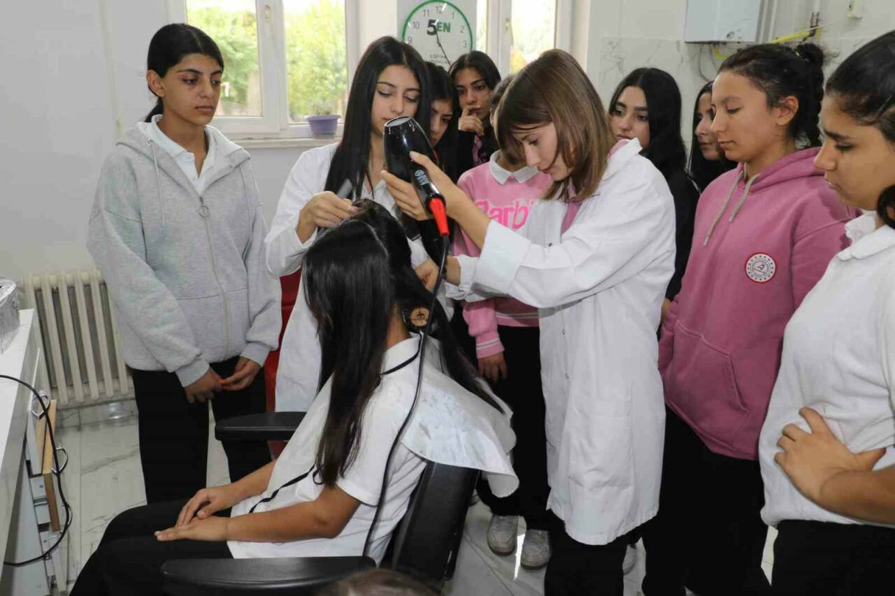 Kuaförlük öğretmeni Birgül Seldüz ise okullarında 2 derslik ve 2 döner sermaye atölyelerinin bulunduğunu söyledi. Seldüz, ’’Öğrencilerimiz 9, 10, 11 ve 12. sınıflarda eğitim görmektedir. Eğitim süreci, kültür dersleriyle başlayıp sonrasında mesleki derslerle devam ediyor. 12’nci sınıfa gelen öğrencilerimiz staj yapmaktadırlar. Ancak öncesinde, bulunduğumuz bu atölyede kuaförlük işlemlerine dair tüm uygulamaları, kuaförlük konseptinde ne varsa birebir bizim öncülüğümüzde öğreniyorlar. Öğrencilerimiz burada belirli bir oranda ücret kazanmaktadır ve sigorta primleri de yatırılmaktadır. Bu süreçte öğrencilerimiz yalnızca mesleki becerilerini değil, aynı zamanda sosyalleşme ve insan ilişkileri konularında da önemli deneyimler kazanmaktadır. Atölyemiz dışarıdan gelen misafirlere de açıktır. Hafta içi, eğitim takvimine göre 09.00-17.00 saatleri arasında dışarıdan gelen danışanlarımızı ağırlıyoruz. Verilen hizmetler, dışarıdaki fiyatlara göre yüzde 50 indirimli olarak sunulmaktadır’’ diye konuştu.