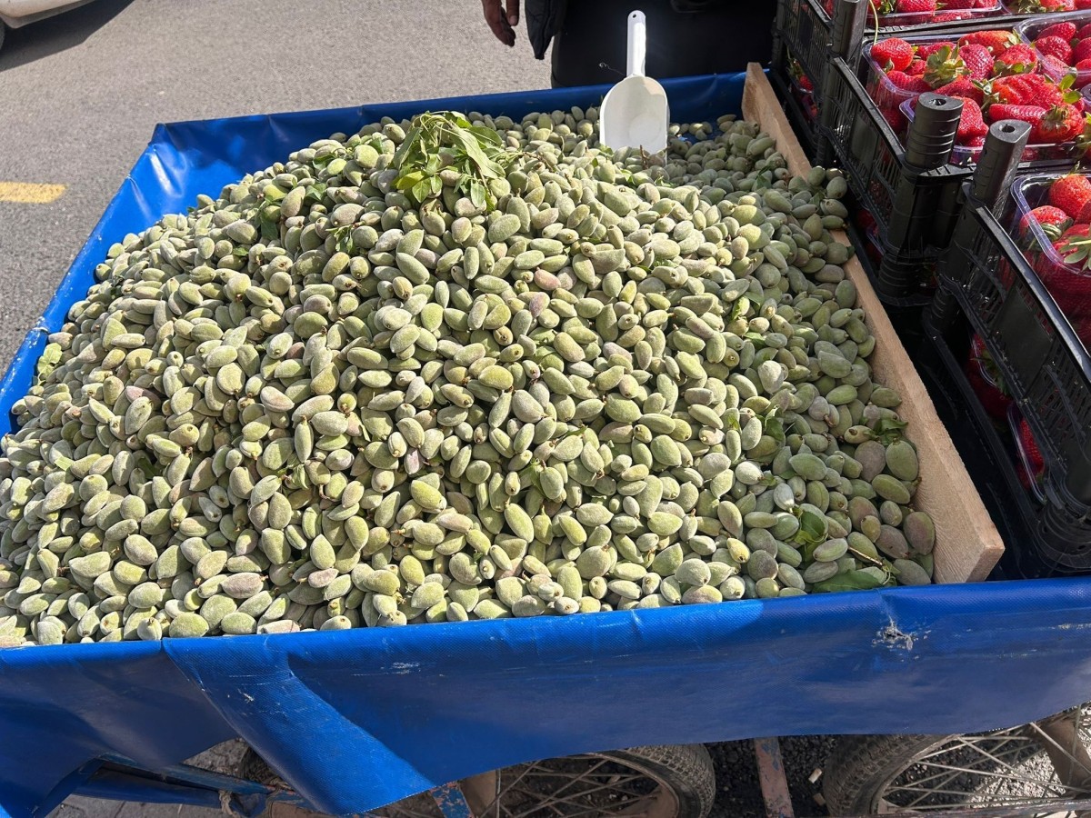 Tezgahında badem satarak geçimini sağlayan Mustafa Bilgin, taze çağla bademlerin kilosunun bu yıl 500 TL’den satıldığını belirtti.
