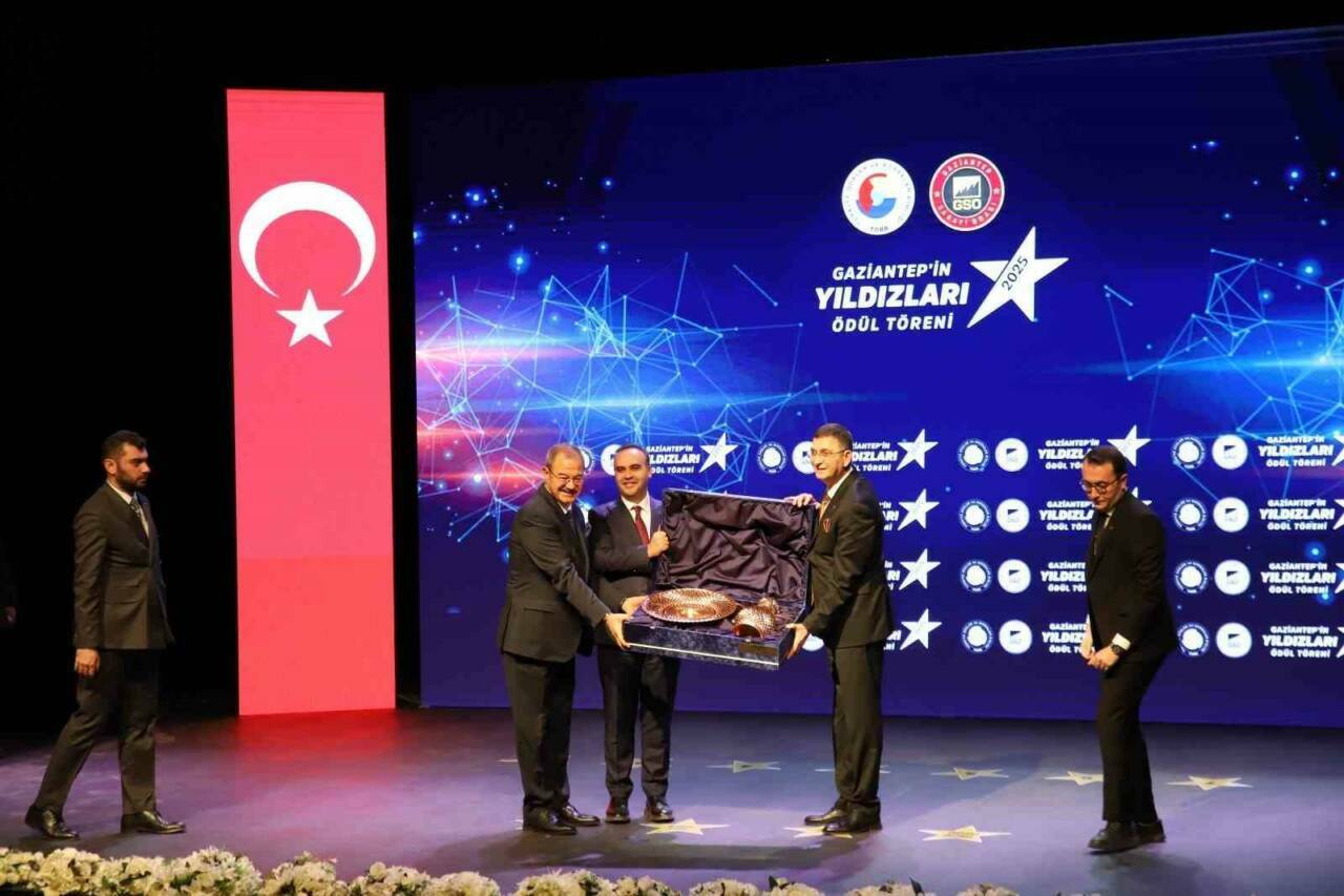 “Sanayide Yapay Zeka” temasıyla gerçekleştirilen, İstanbul Sanayi Odası’nın hazırladığı Türkiye’nin en büyük sanayi kuruluşları arasında yer alan Gaziantep firmalarının ödüllendirildiği Gaziantep’in Yıldızları-2025 Ödül Töreni, Gaziantep Üniversitesi Atatürk Kültür Sahnesi’nde yapıldı. Bir dizi program ve açılış için Gaziantep’te bulunan Sanayi ve Teknoloji Bakanı Mehmet Fatih Kacır da törene katıldı.