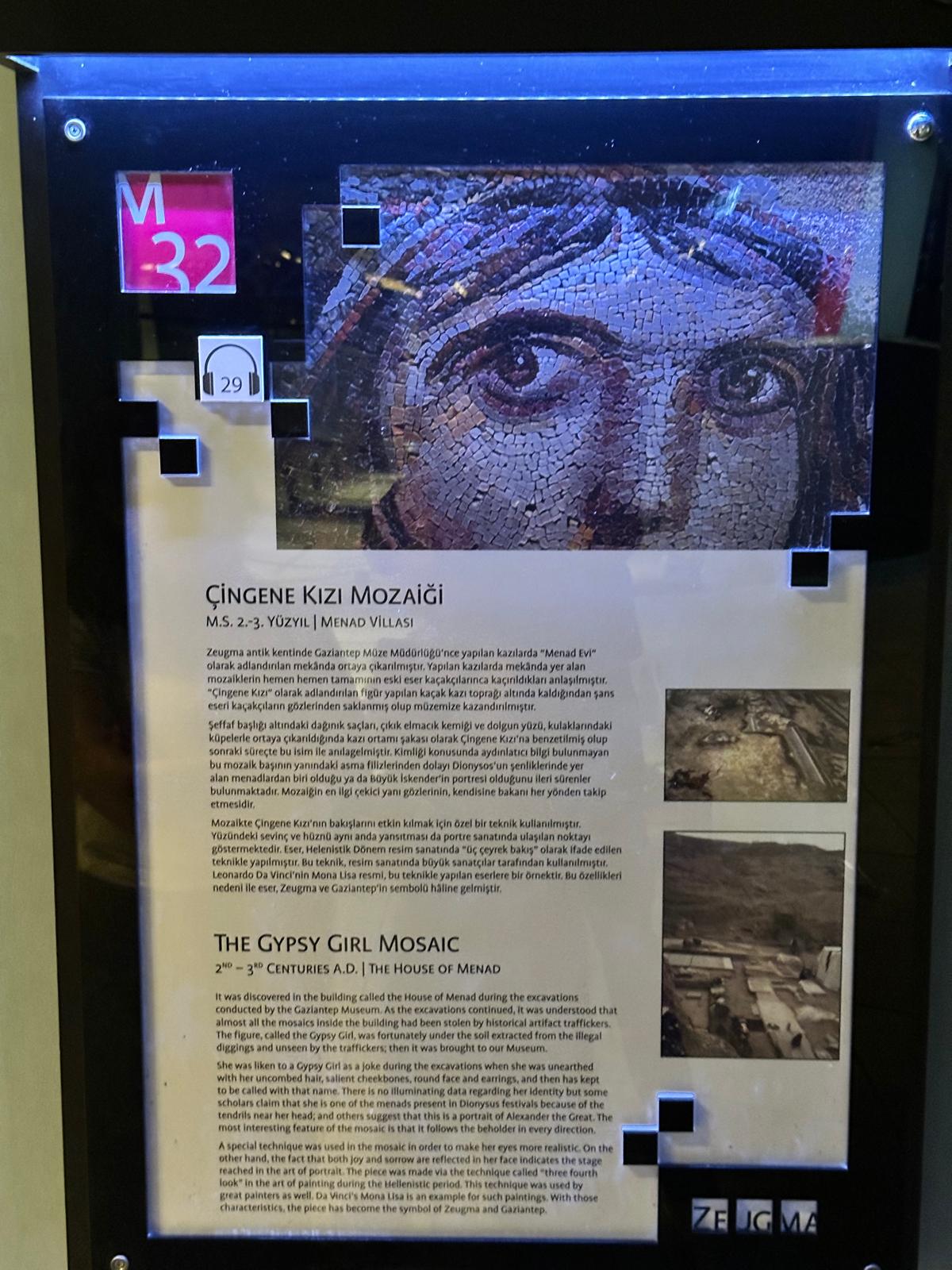 Müzenin en önemli eserlerinden biri, Menad Villasının yemek odasında bulunan ve ‘Çingene Kızı’ olarak bilinen mozaik.