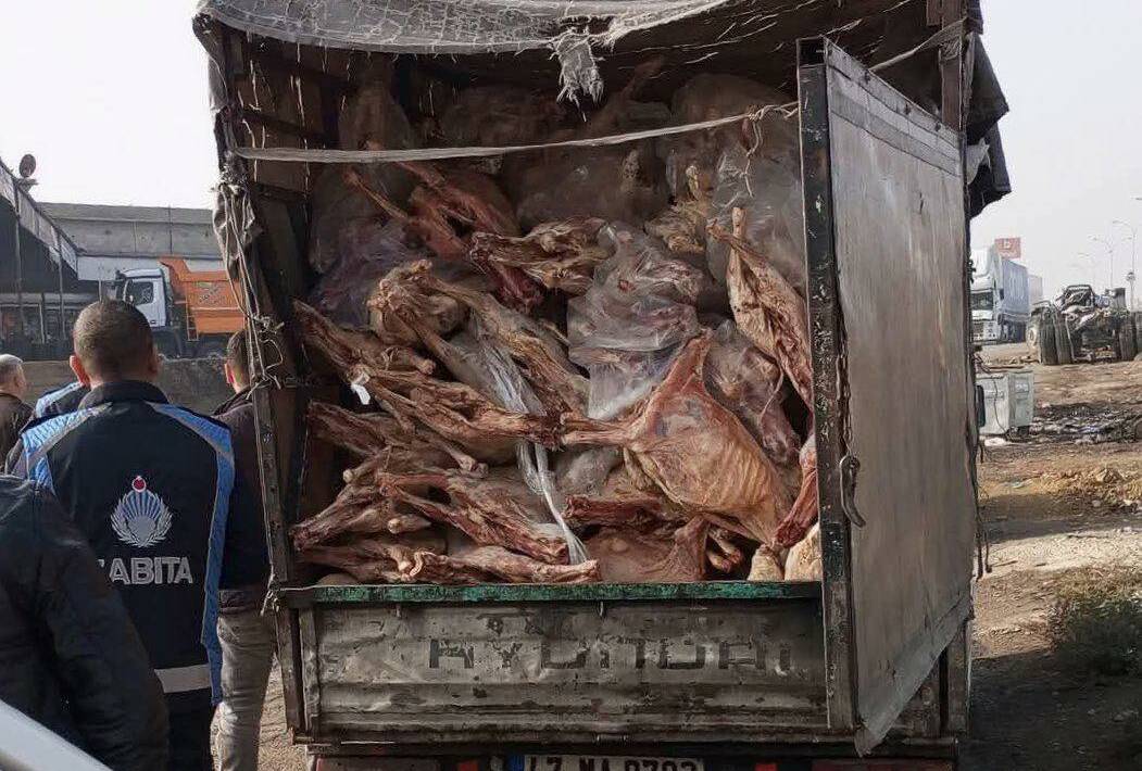 Edinilen bilgilere göre, ilçe girişinde uygulama yapan polis ekipleri, durumundan şüphelendikleri kamyoneti durdurarak arama gerçekleştirdi. Yapılan aramada, kamyonetin kasasında sağlık koşullarına tamamen aykırı şekilde taşınan ve çürümüş olduğu belirlenen yüklü miktarda et bulundu.