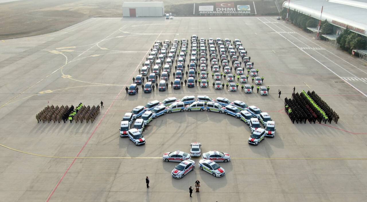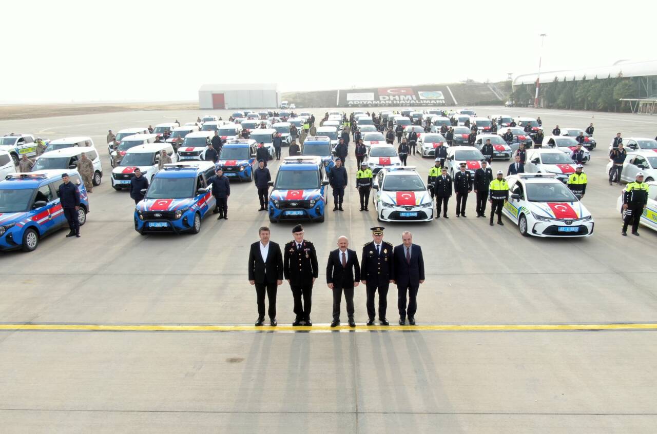 Adıyaman’da güvenlik hizmetlerinin daha etkin, hızlı ve güçlü bir şekilde yürütülmesi amacıyla Cumhurbaşkanımız Sayın Recep Tayyip Erdoğan, İçişleri Bakanımız Sayın Ali Yerlikaya ve hayırseverlerimizin katkılarıyla İl Emniyet Müdürlüğümüze ve İl Jandarma Komutanlığımıza kazandırılan toplam 116 yeni hizmet aracı düzenlenen törenle hizmete başladı.