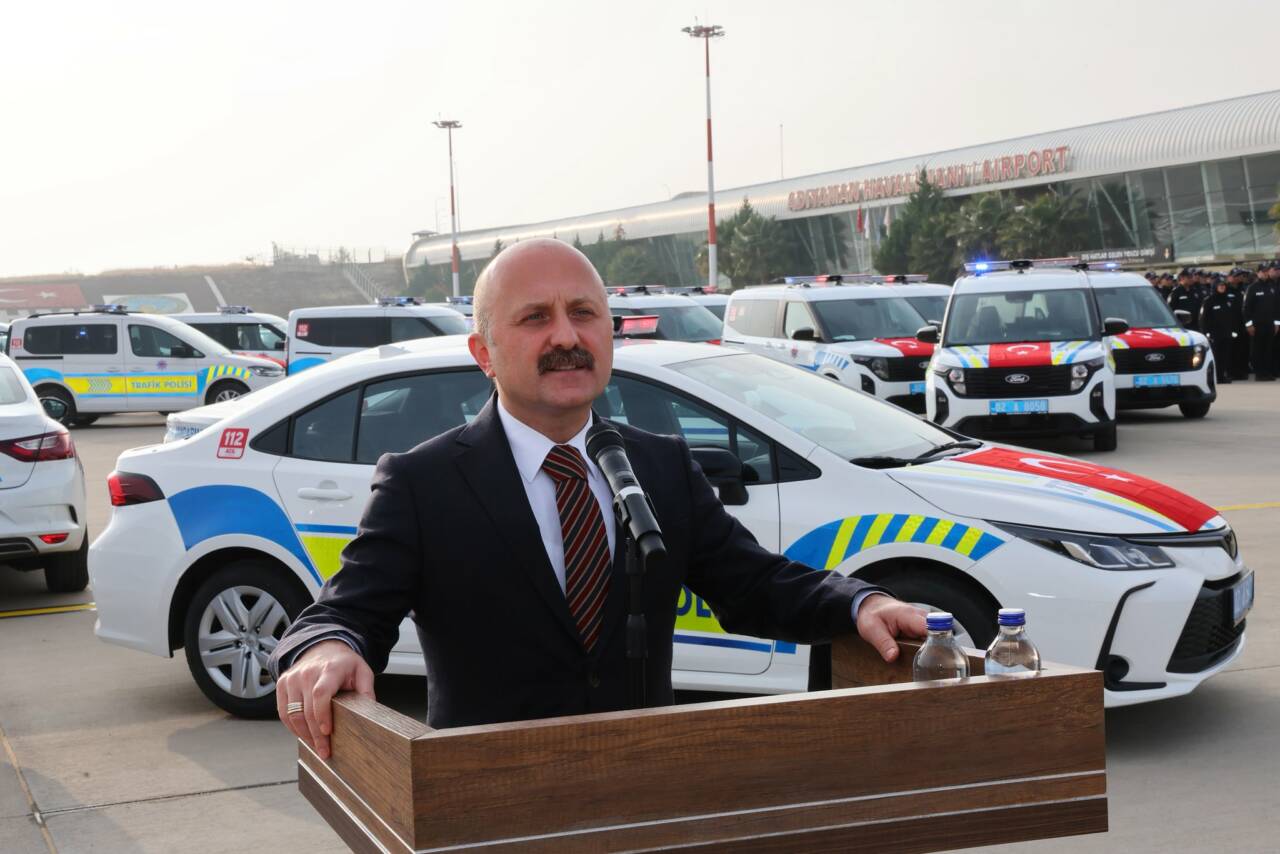 Adıyaman Havalimanı’nda düzenlenen 116 adet yeni hizmet aracının teslim törenine katılan Vali Dr. Osman Varol, ilimizde güvenlik hizmetlerinin gücünü ve hızını önemli ölçüde artıracak araçlardan 77 tanesi İl Emniyet Müdürlüğüne 39 tanesinin ise İl Jandarma Komutanlığına tahsis edildiğini belirterek “Yeni ve modern araçlarımız yıllardır sahada fedakârca görev yapan polis ve jandarma personelimizin yükünü hafifleteceği gibi, görevini daha hızlı ve güvenli icra etmesine katkı sağlayacaktır. Bu araçlarımız acil durumlara daha hızlı müdahale edilmesini, kırsal bölgelerde kontrol ve devriyenin güçlenmesini, şehir içinde ise vatandaşlarımızın kendini daha güvende hissetmelerine vesile olacaktır” dedi