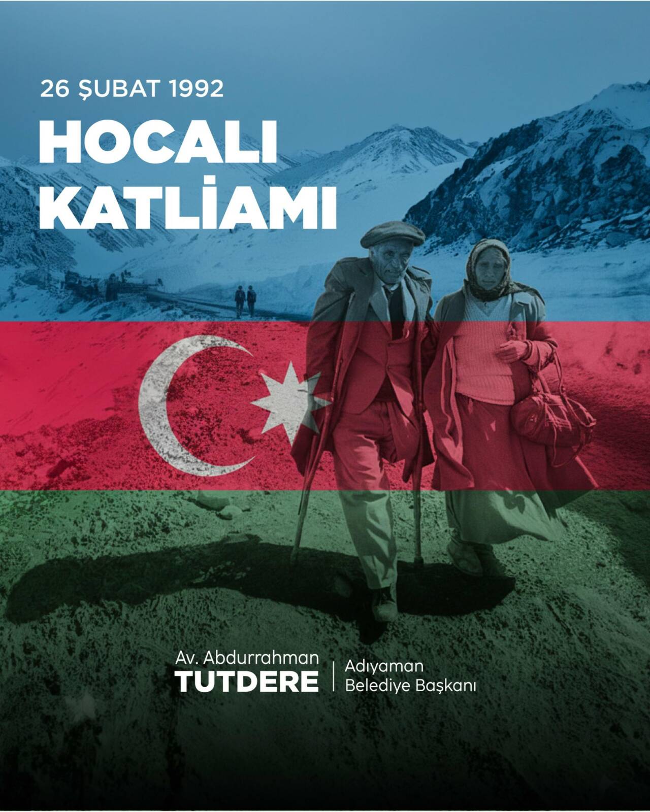 Adıyaman Belediye Başkanı Abdurrahman Tutdere, Hocalı Katliamı’nın yıl dönümü dolayısıyla bir anma mesajı yayımladı. Tutdere, sosyal medya hesabından yaptığı paylaşımda, 26 Şubat 1992’de yaşanan trajedinin insanlık tarihine kara bir leke olarak kazındığını ifade etti.