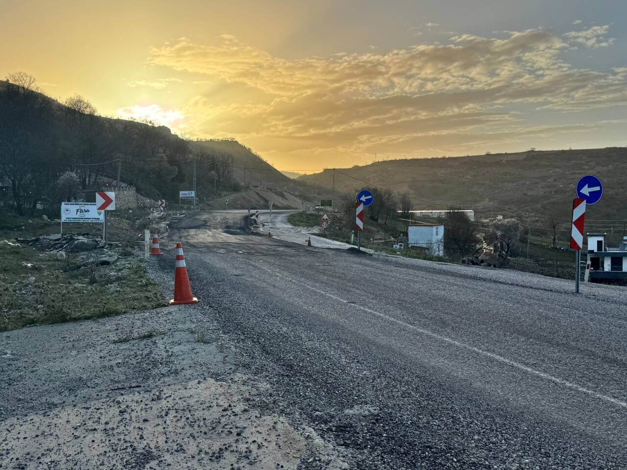 Yine Hamzıyan köyü alt kısımlarında meydana gelen heyelan nedeniyle yol tek şeritten hizmet veriyor.