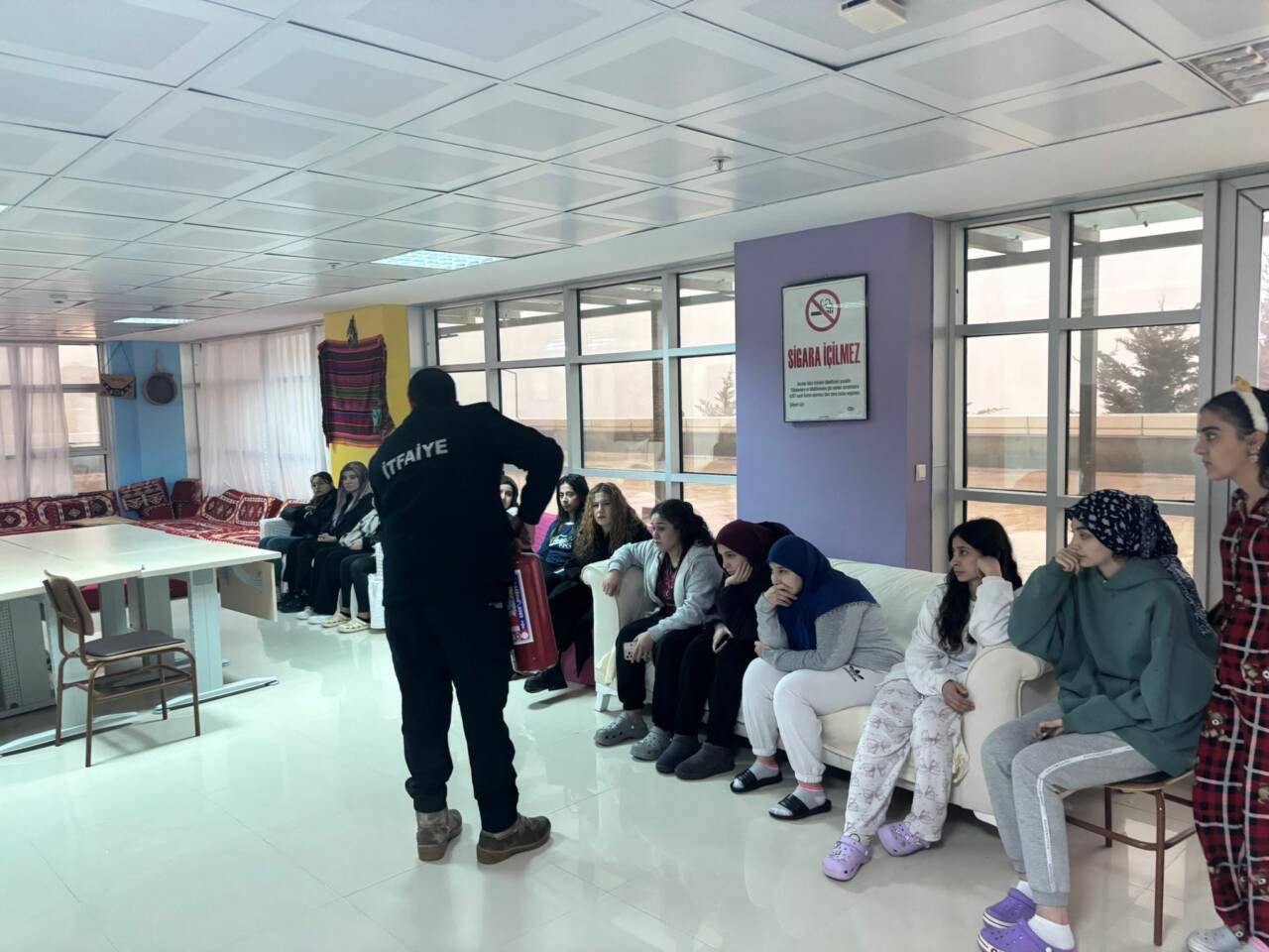 Tatbikatta, yangın sırasında yaralanan bir kişinin güvenli şekilde tahliye edilmesi senaryosu da uygulandı. İtfaiye ekipleri tarafından yangın anında doğru müdahale yöntemleri öğrencilere ve yurt personeline gösterildi.