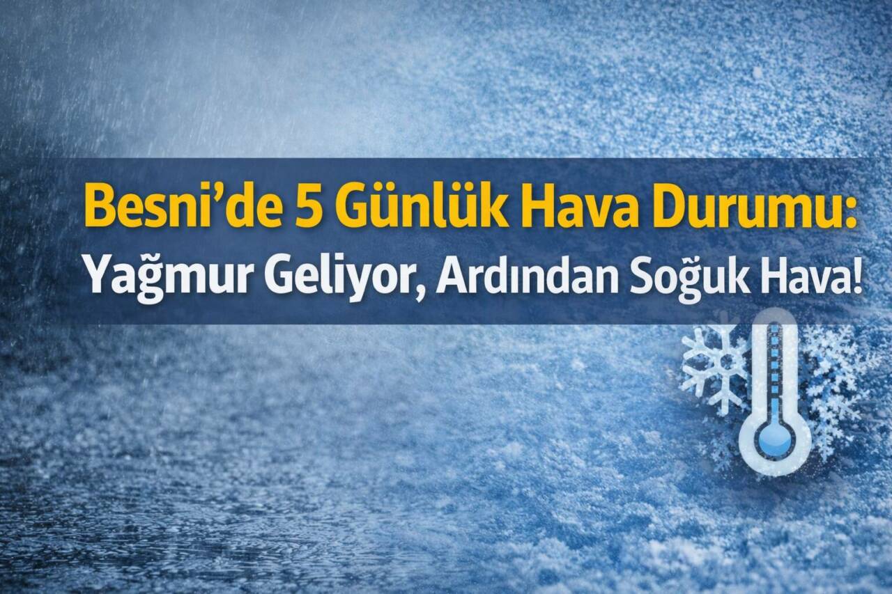 Besni’de meteoroloji verilerine göre önümüzdeki 5 gün boyunca yağış ve ani sıcaklık değişimleri etkili olacak. Hafta ortasında yağmur beklenirken, hafta sonuna doğru hava yeniden soğuyacak.
