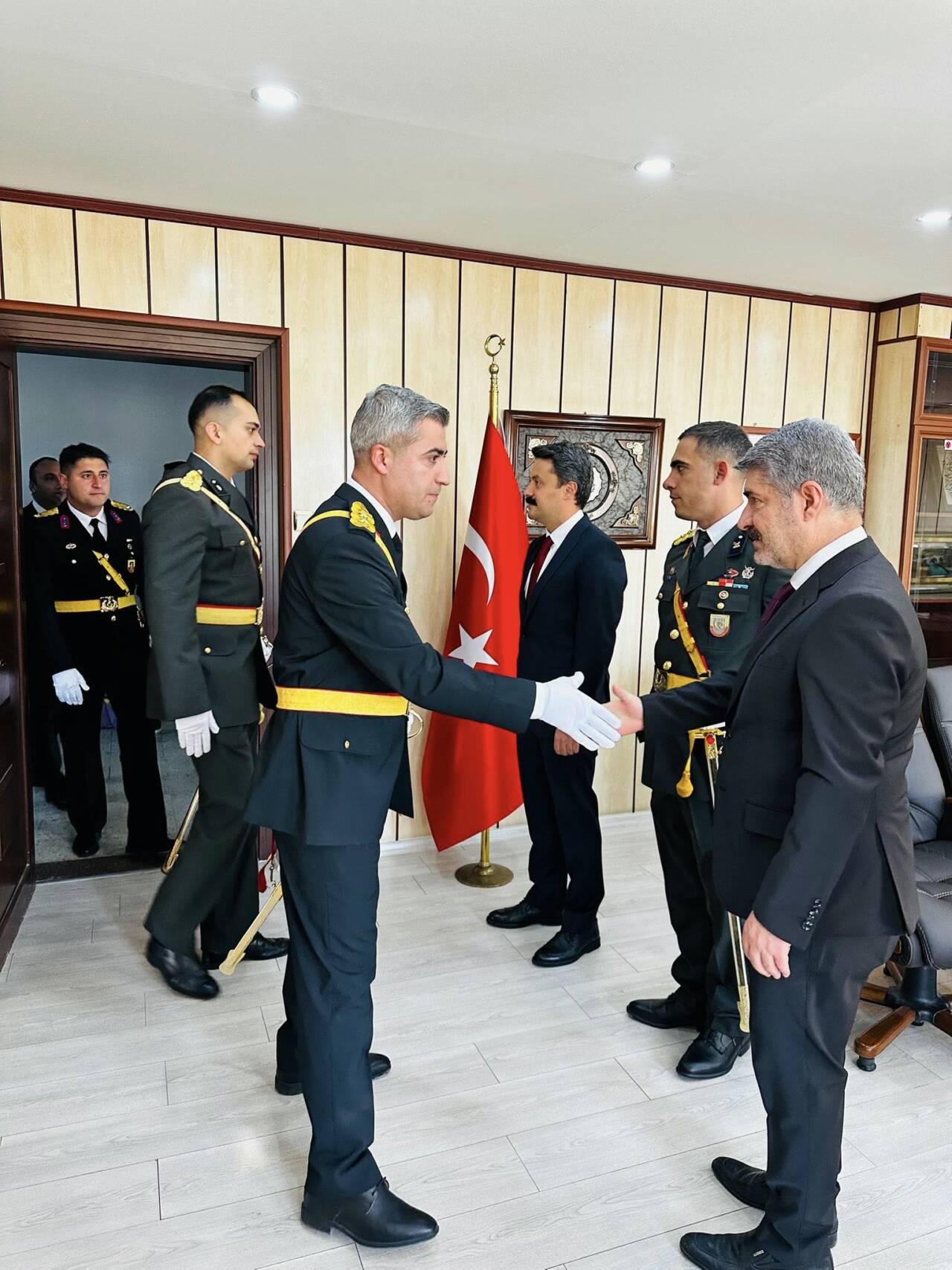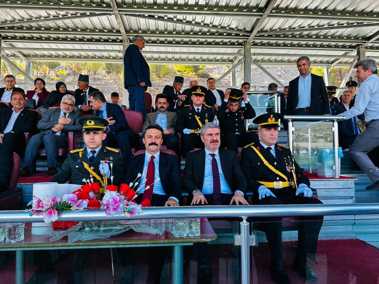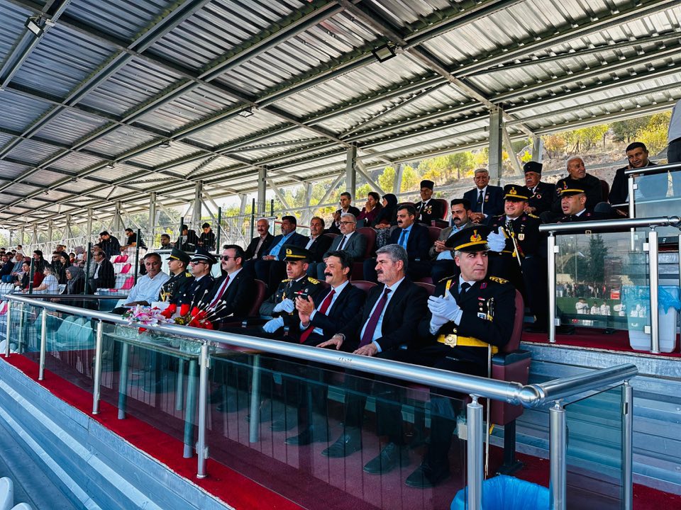 Kaymakam Ahmet Oğuz Aslan, Belediye Başkanı Reşit Alkan ve Hava Savunma Üsteğmen Onur Erbaşı, alanı dolduran öğrenciler ve vatandaşların bayramını kutladı.