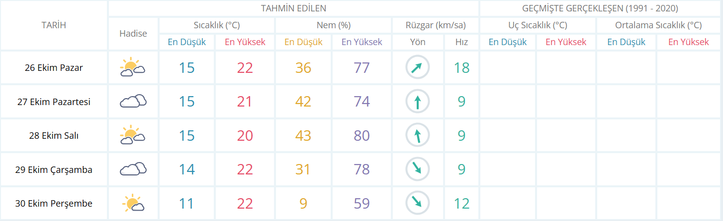 26 Ekim Pazar – Ilık ve Hafif Rüzgarlı
