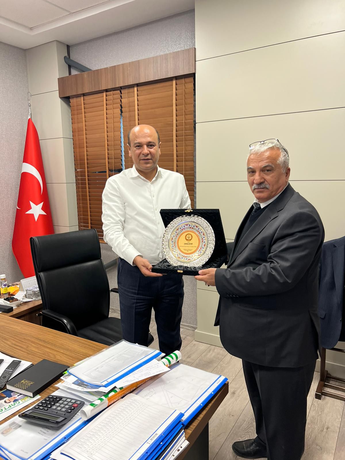 Başkan Yılmaz ve Acar’a Plaket Takdimi