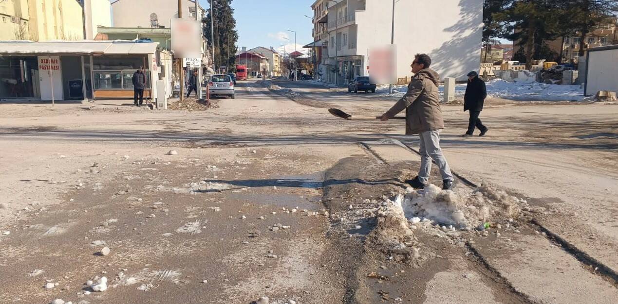 Birkaç gün boyunca etkili olan kar yağışının ardından don olayının yaşanmasıyla caddelerdeki kar kütleleri hem sürücülere hem de vatandaşlar zor anlar yaşatmaya başladı. Çevredeki esnaflar, kimsenin zarar görmemesi için kolları sıvayarak donan karları kazma ve küreklerle kırarak temizlik çalışması yaptı.