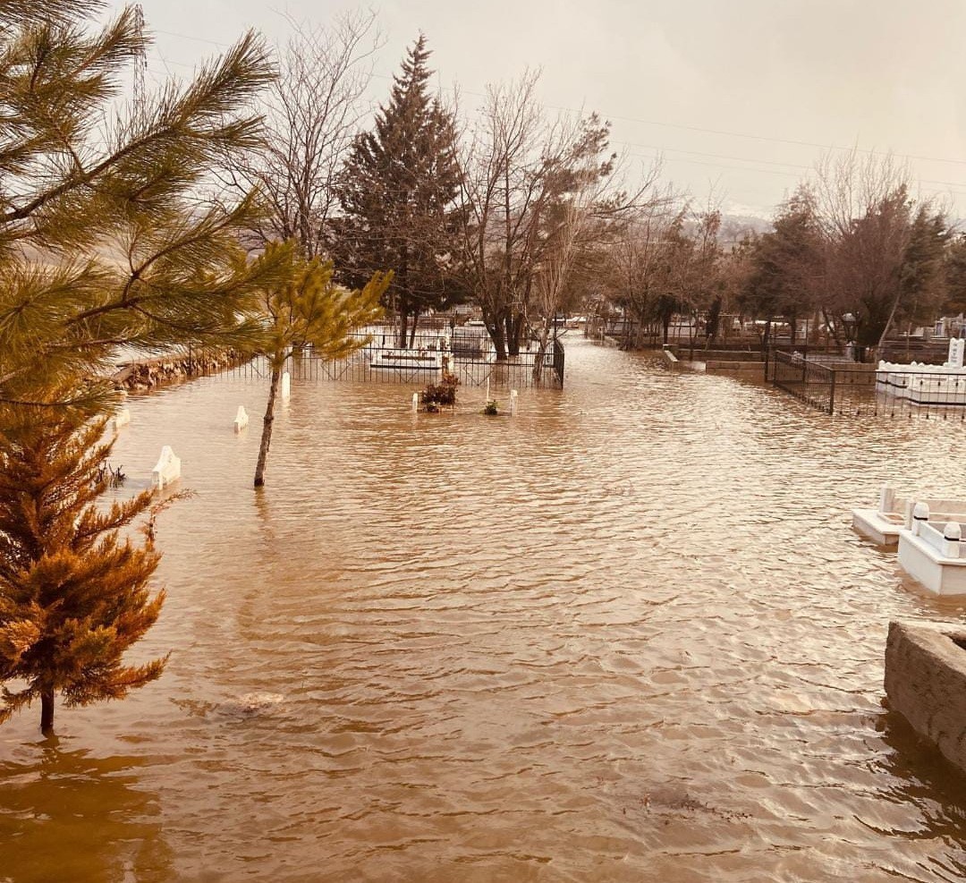 Adıyaman’ın Gölbaşı ilçesinde birkaç gündür etkili olan yağmur yağışı dolayısıyla Gölbaşı Yarbaşı Mezarlığını sular bastı. Mezarlıkta suların birikmesi ve göle dönmesiyle mezarlık sular altında kaldı. Mezarlığın sular altında kalmasına tepki gösteren vatandaşlar, su giderlerinin çalışmamasından kaynaklı olarak bu tür durumun yaşandığını belirtti.