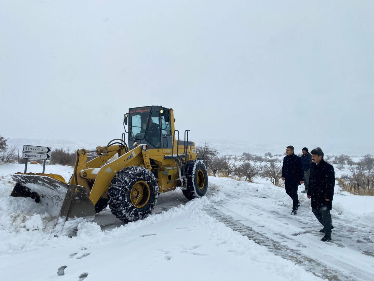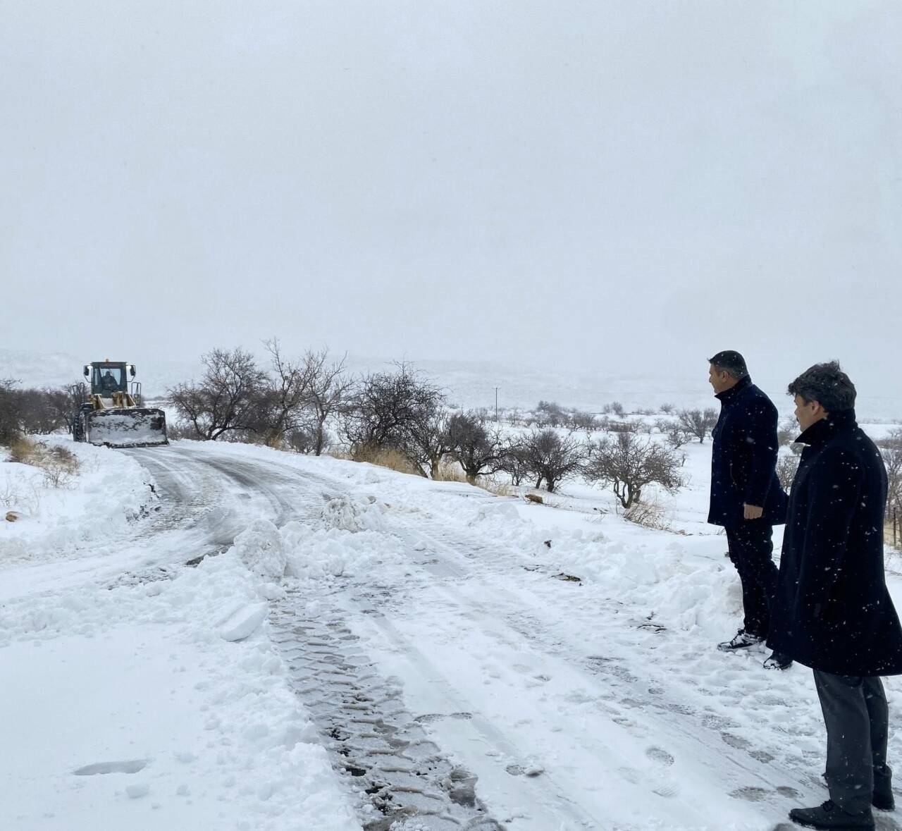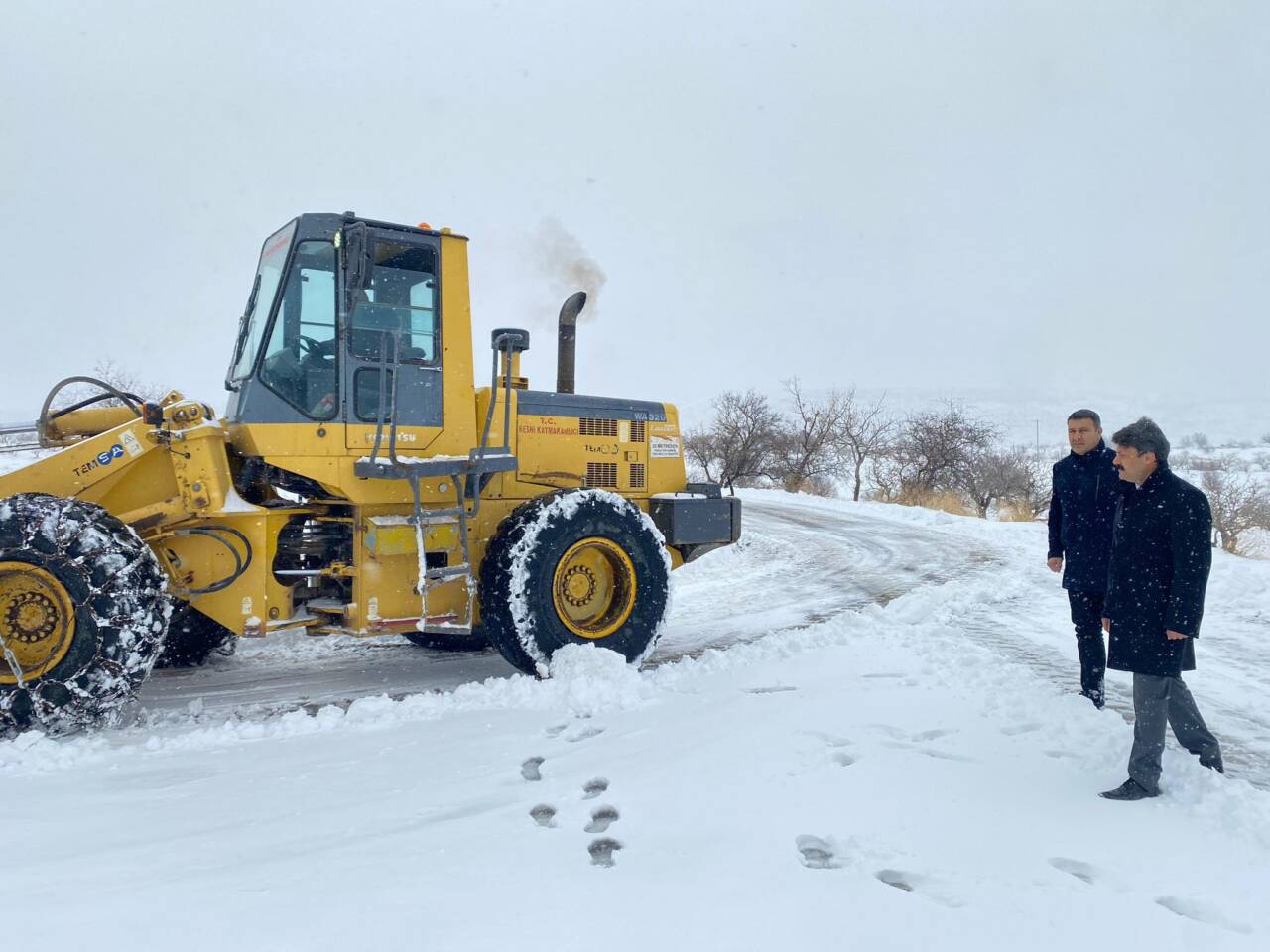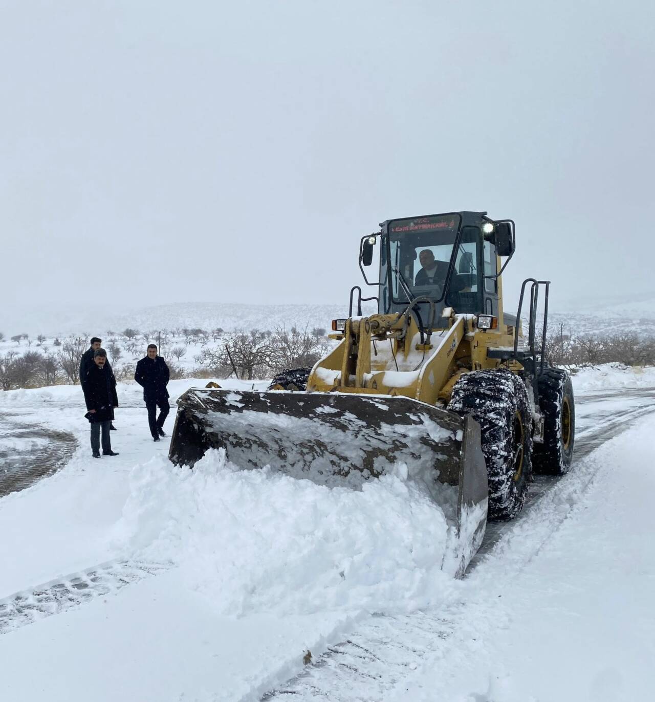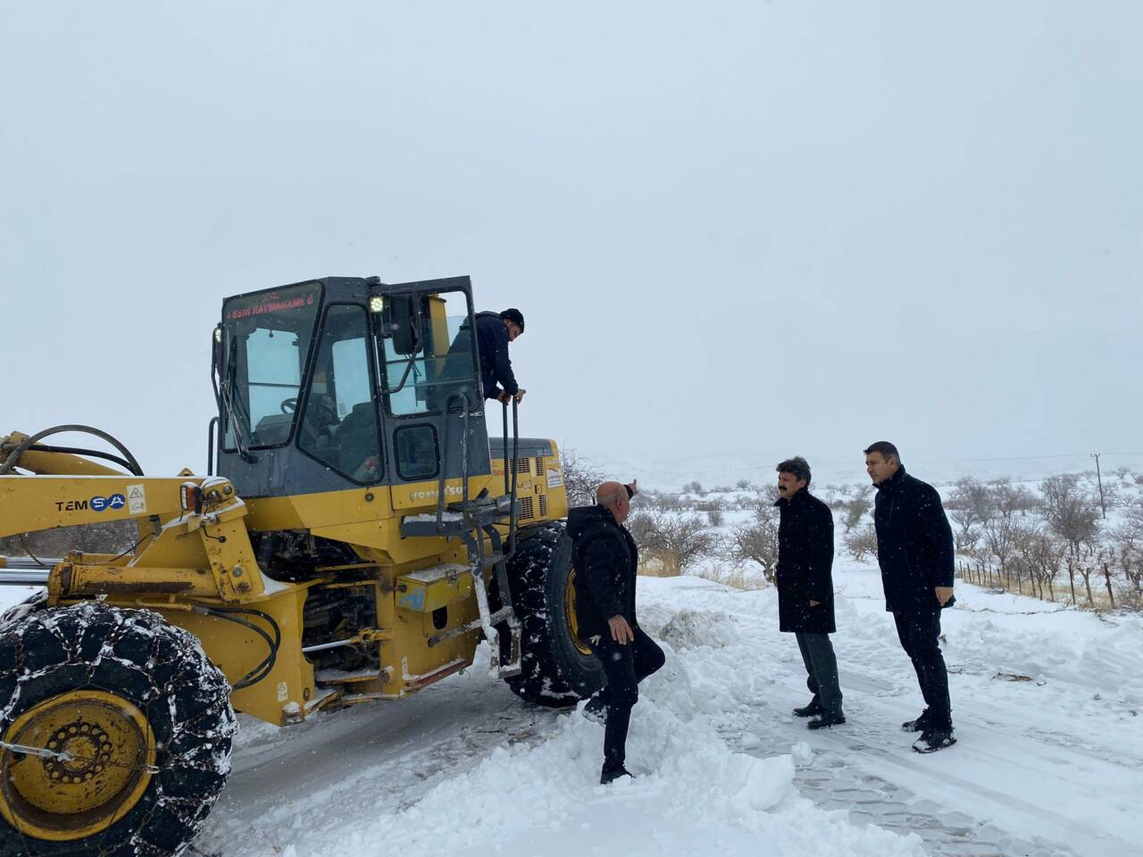 Besni Kaymakamı Ahmet Oğuz Aslan, köy yollarında karla mücadele kapsamında