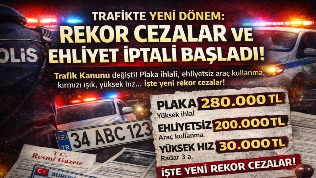 Trafik Kanunu’nda yapılan kapsamlı değişiklikler Resmî Gazete’de yayımlanarak yürürlüğe girdi. Yeni düzenleme ile plaka ihlallerinden kırmızı ışık tekrarına, ehliyetsiz sürüşten uyuşturucu testine kadar birçok başlıkta cezalar ciddi şekilde artırıldı. Bazı ihlallerde ehliyete el koyma süreleri uzatılırken, tekrar eden suçlarda ehliyet iptali yolu açıldı.