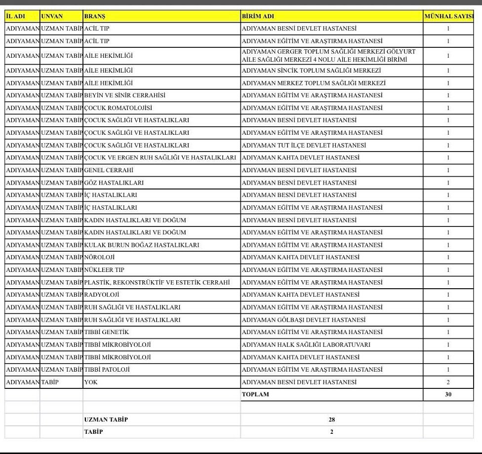 Kura kapsamında Adıyaman il geneline toplam 30 hekim, Besni ilçesine ise 8 yeni hekim atandı.